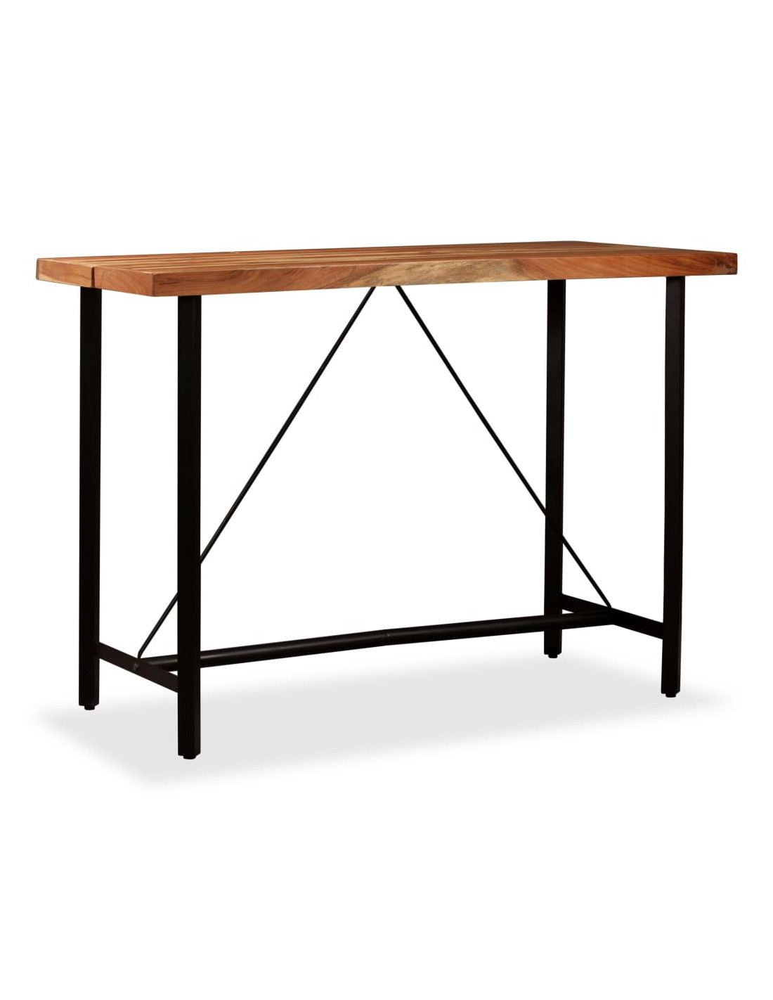 Il tavolo da bar è realizzato in legno massello di acacia, durevole, stabile e facile da pulire. La lavorazione artigianale e le bellissime venature del legno rendono ogni pezzo unico e leggermente diverso dagli altri. Le robuste gambe in acciaio rendono il tavolo da bar molto robusto e durevole e ne sottolineano lo spettacolare stile industriale. Nota importante: Le venature del legno possono variare da pezzo a pezzo, rendendo ogni pezzo unico. La consegna è casuale, garantendo l'esclusività e l'individualità del prodotto.