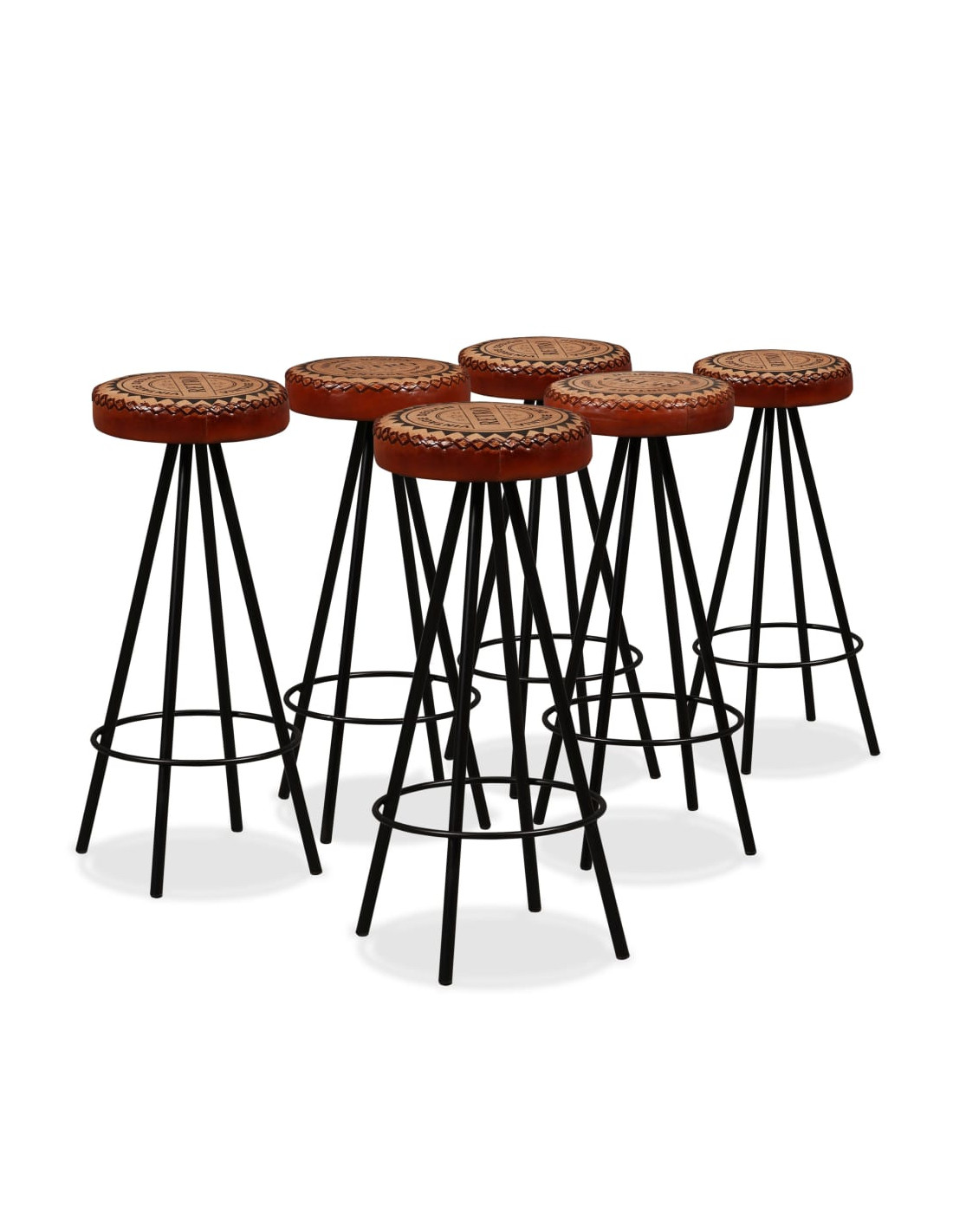 Gli sgabelli da bar sono rivestiti in vera pelle morbida al tatto e tela, che rende gli sgabelli estremamente resistenti e confortevoli. Le robuste gambe in acciaio rendono gli sgabelli molto robusti e ne sottolineano lo spettacolare stile industriale.