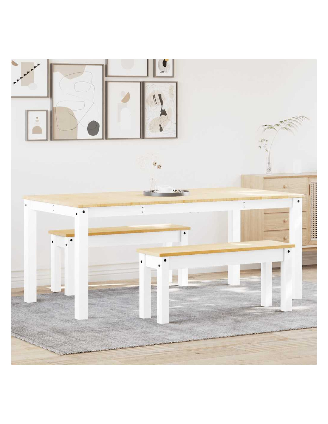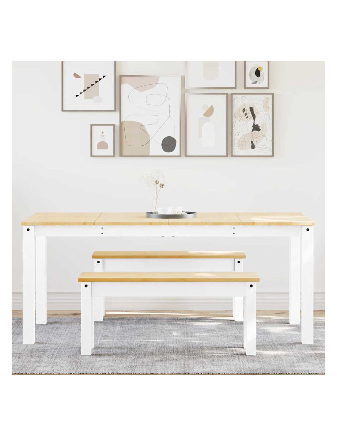 Crea un luogo caldo e invitante per iniziare la giornata o goditi un ottimo pasto insieme a questo set da pranzo in legno! Materiale robusto e stabile: Il legno massello di pino è noto per la sua resistenza e durata. Le sue venature dritte e i suoi nodi caratteristici contribuiscono al suo fascino rustico.Piano del tavolo robusto: questo tavolo da pranzo è dotato di un piano resistente, che lo rende ideale per servire pasti, spuntini, bevande e mettere in mostra le vostre decorazioni preferite.Ampia seduta: grazie alla generosa seduta della panca, questo set da pranzo è perfetto per riunire la famiglia e gli amici per un pranzo delizioso.Facile manutenzione: grazie alla sua superficie liscia, il set da pranzo è facile da pulire con un panno umido e richiede meno manutenzione.Ampie applicazioni: Il set di tavoli da pranzo presenta un design minimalista per adattarsi a qualsiasi ambiente della tua casa. Può essere utilizzato in cucina, sala da pranzo, ecc.