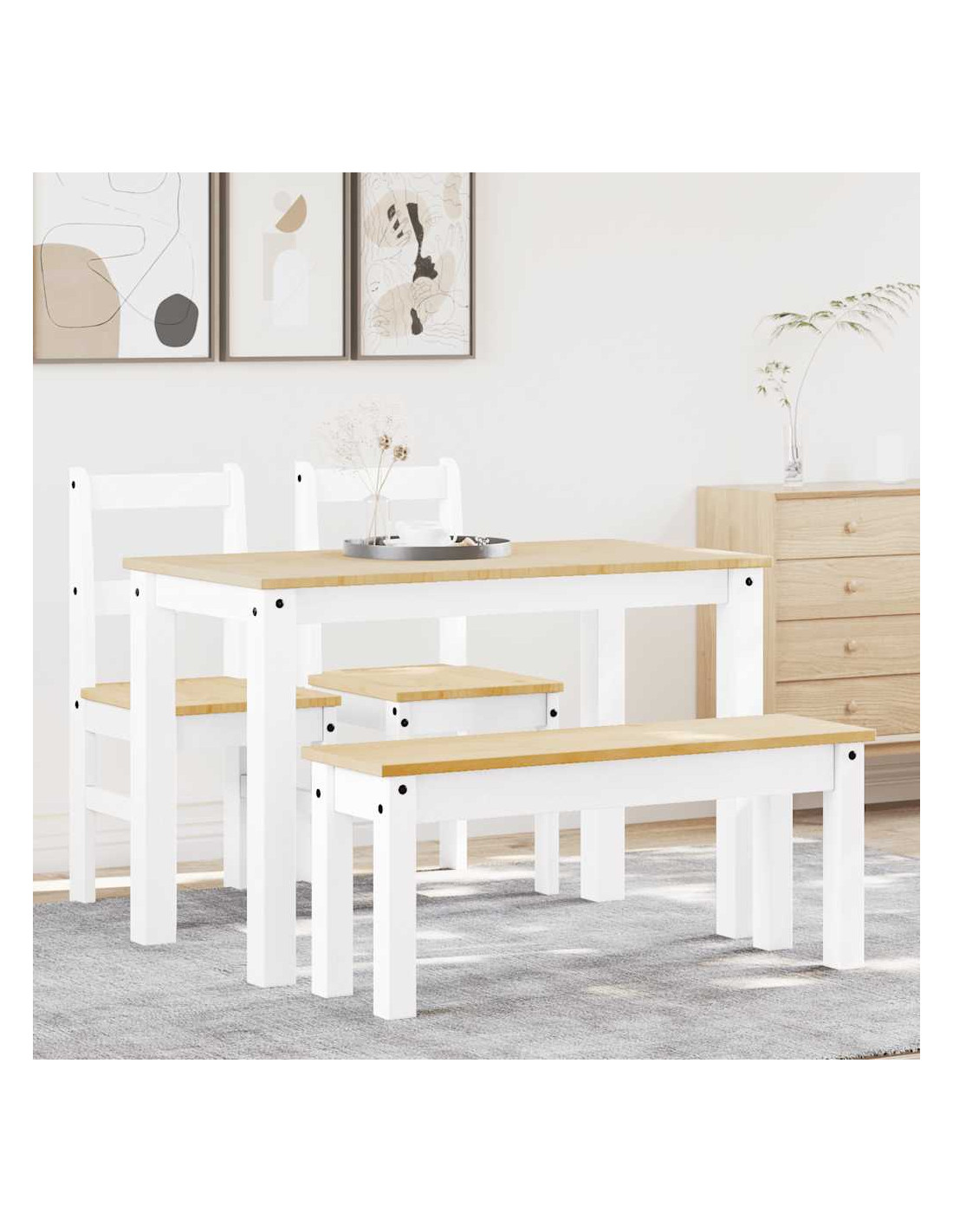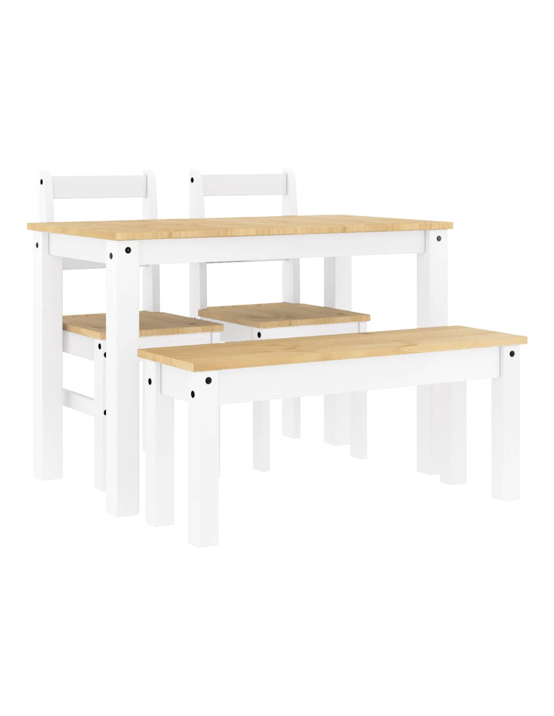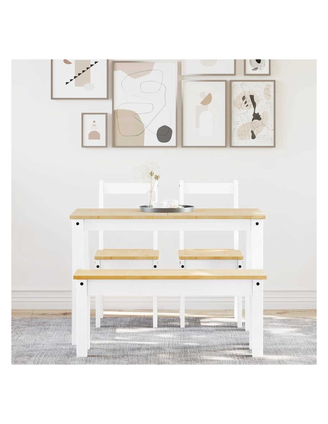 Crea un luogo caldo e invitante per iniziare la giornata o goditi un ottimo pasto insieme a questo set da pranzo in legno! Materiale robusto e stabile: Il legno massello di pino è noto per la sua resistenza e durata. Le sue venature dritte e i suoi nodi caratteristici contribuiscono al suo fascino rustico.Piano del tavolo robusto: questo tavolo da pranzo è dotato di un piano resistente, che lo rende ideale per servire pasti, spuntini, bevande e mettere in mostra le vostre decorazioni preferite.Ampia seduta: grazie alla generosa seduta della panca, questo set da pranzo è perfetto per riunire la famiglia e gli amici per un pranzo delizioso.Facile manutenzione: grazie alla sua superficie liscia, il set da pranzo è facile da pulire con un panno umido e richiede meno manutenzione.Ampie applicazioni: Il set di tavoli da pranzo presenta un design minimalista per adattarsi a qualsiasi ambiente della tua casa. Può essere utilizzato in cucina, sala da pranzo, ecc.
