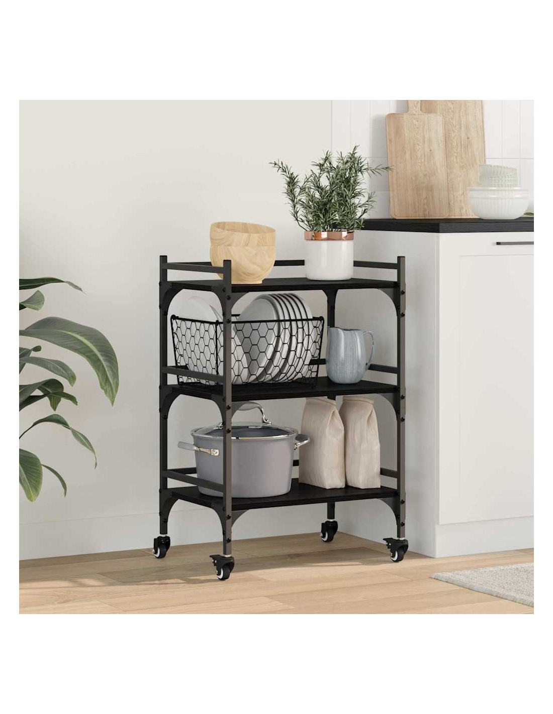 Il carrello da cucina in legno è un must per ogni cucina in movimento, si integra perfettamente con il design grazie al suo stile industriale. Perfetto per chi ama i mobili pratici e belli, migliora l'estetica e la funzionalità della tua cucina. Con la sua forma rettangolare e superficie liscia, diventa subito un punto focale accattivante e versatile per le esigenze di cucina e pranzo.