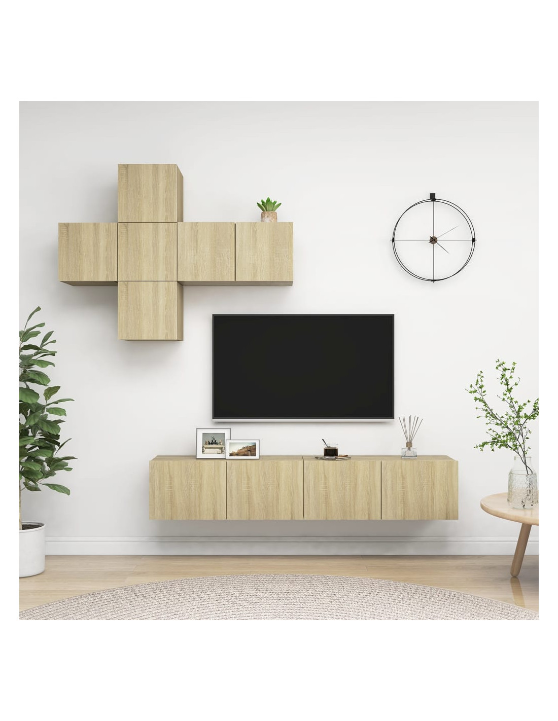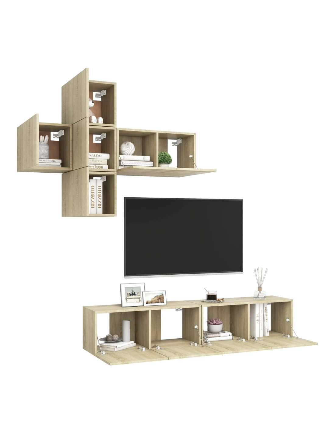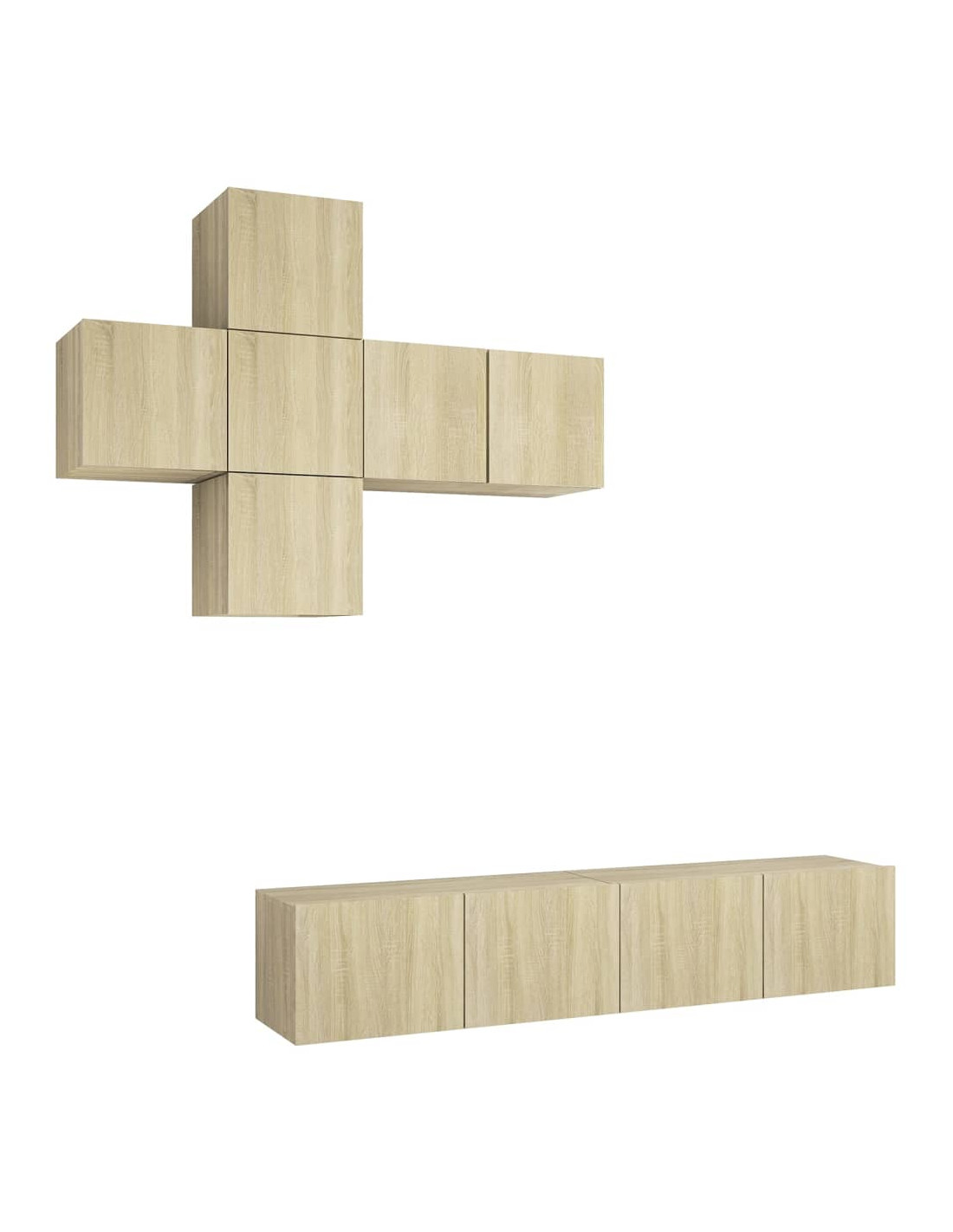 Questo set di mobili TV sospeso è realizzato in legno multistrato, ed è robusto e durevole. Il set di armadietti è fissato al muro e costituisce un'aggiunta in uno stile senza tempo alla vostra casa. Il set è dotato di diversi scomparti che lo rendono un luogo ideale per riporre riviste, DVD o altri oggetti. Questo set di mobili per dispositivi multimediali è facile da pulire con un panno umido.