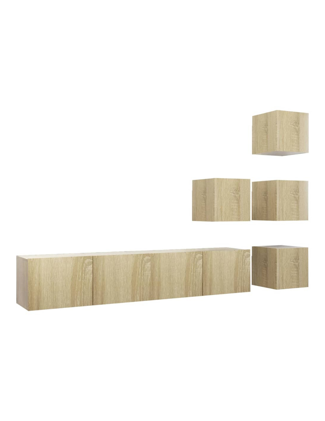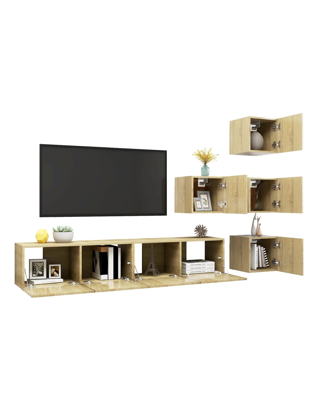 Questo set di mobili TV sospeso è realizzato in legno multistrato, ed è robusto e durevole. Il set di armadietti è fissato al muro e costituisce un'aggiunta in uno stile senza tempo alla vostra casa. Il set è dotato di diversi scomparti che lo rendono un luogo ideale per riporre riviste, DVD o altri oggetti. Questo set di mobili per dispositivi multimediali è facile da pulire con un panno umido.
