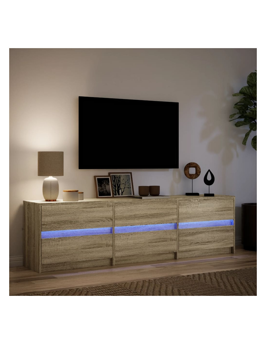 Caratterizzato da un design alla moda ma pratico, questo mobile porta TV con luci a LED diventerà sicuramente un punto focale nella vostra stanza.