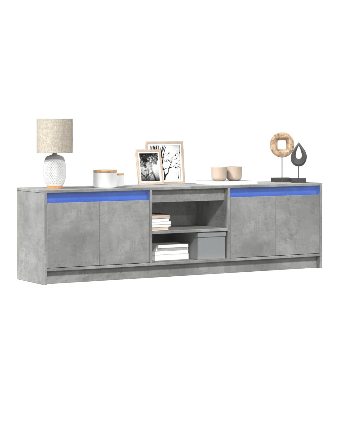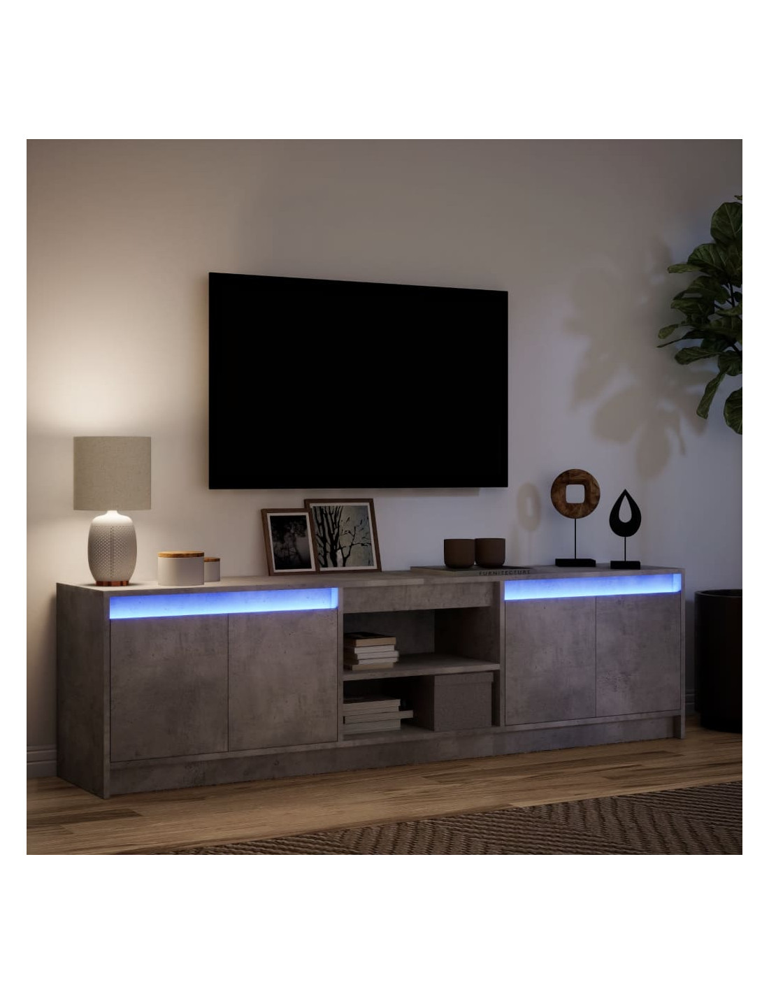Caratterizzato da un design alla moda ma pratico, questo mobile porta TV con luci a LED diventerà sicuramente un punto focale nella vostra stanza. Materiale stabile e durevole: Il legno multistrato è un materiale stabile e durevole con una superficie liscia che è resistente all'umidità, alla deformazione, e alla spaccatura, quindi è una scelta affidabile per vari progetti.Luci a LED RGB per un'atmosfera piacevole: Questo supporto TV è dotato di luci a LED che possono essere facilmente regolate per creare uno spettacolo di luci personalizzato. Potete personalizzare le modalità, i colori e la luminosità per migliorare l'atmosfera del vostro spazio interno.Ampio spazio portaoggetti: Questo mobile TV offre ampio spazio per tenere riviste, libri, DVD e dispositivi multimediali ben organizzati e a portata di mano.Piano d'appoggio stabile e robusto: Il piano robusto è ideale per posizionare la TV e gli impianti stereo o alcuni oggetti decorativi come vasi o piante in vaso. Buono a sapersi:Il prodotto è dotato di un connettore USB che richiede una fonte di alimentazione USB certificata da 5 V (non inclusa). Avvertenza:Per evitare il ribaltamento, questo prodotto deve essere utilizzato con il dispositivo di fissaggio a parete incluso.