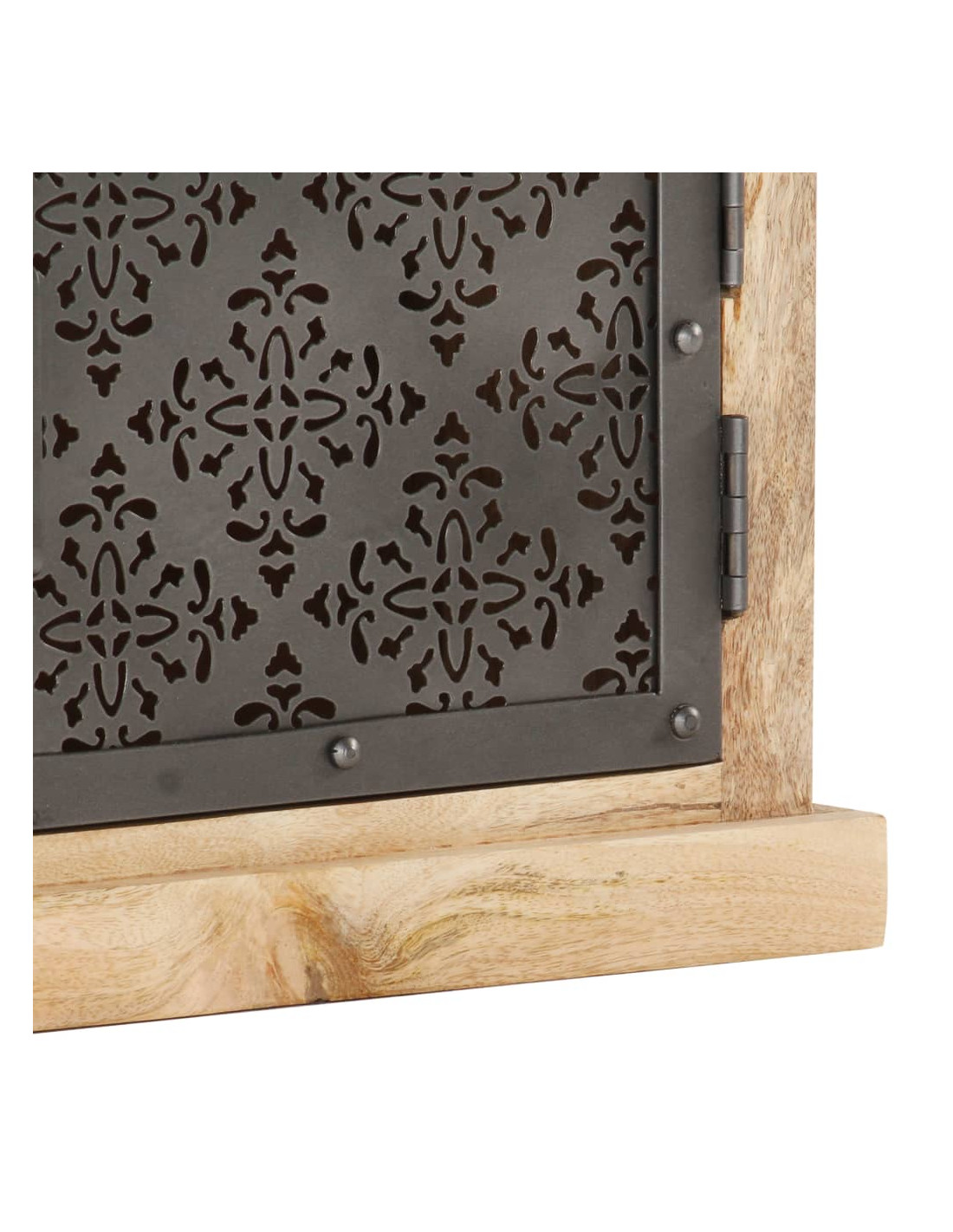 Quest'armadietto multimediale, realizzato in legno massello di mango, ha una splendida finitura dovuta a lucidatura, verniciatura e laccatura, ossia lavorazioni che gli conferiscono un aspetto raffinato. Le ante in acciaio traforato si aggiungono alla bellezza del mobile. Questo supporto per TV include 2 ripiani aperti e 2 ante dove riporre i vostri dispositivi elettronici, accessori di gioco, libri e altri oggetti. È facile da pulire con un panno umido.
