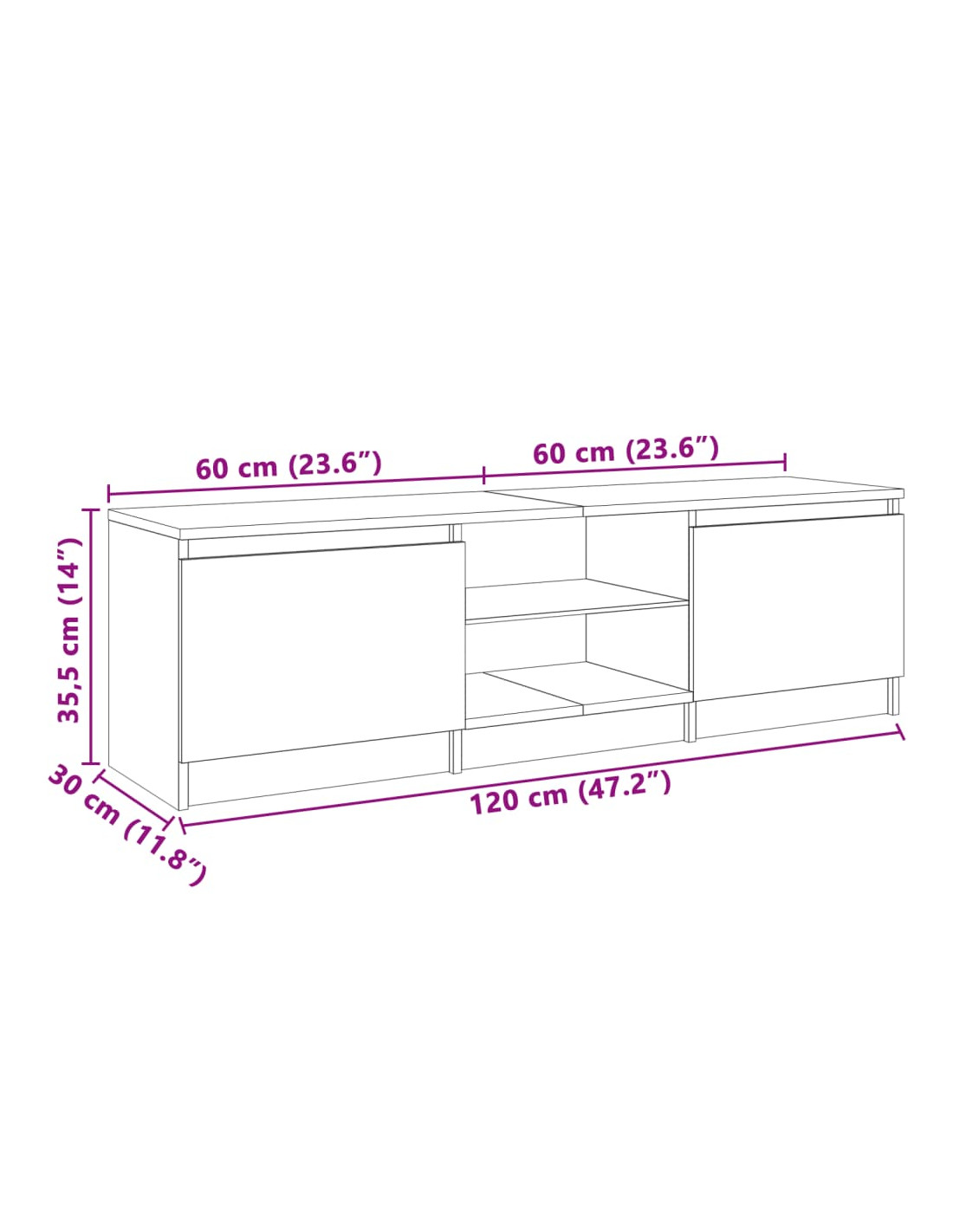 - Dimensioni: 120 x 30 x 35,5 cm (L x P x A)