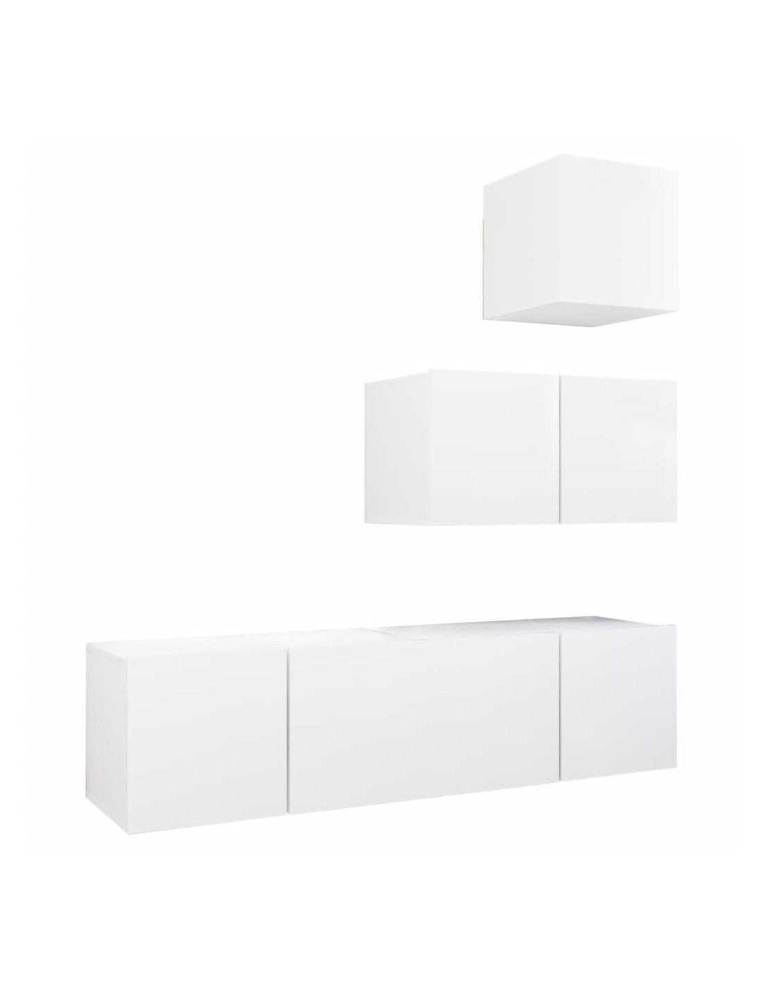 Questo set di mobili TV sospeso è realizzato in legno multistrato, ed è robusto e durevole. Il set di armadietti è fissato al muro e costituisce un'aggiunta in uno stile senza tempo alla vostra casa. Il set è dotato di diversi scomparti che lo rendono un luogo ideale per riporre riviste, DVD o altri oggetti. Questo set di mobili per dispositivi multimediali è facile da pulire con un panno umido.