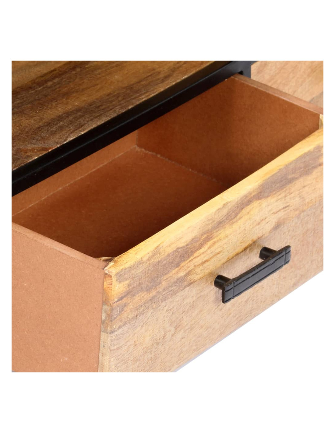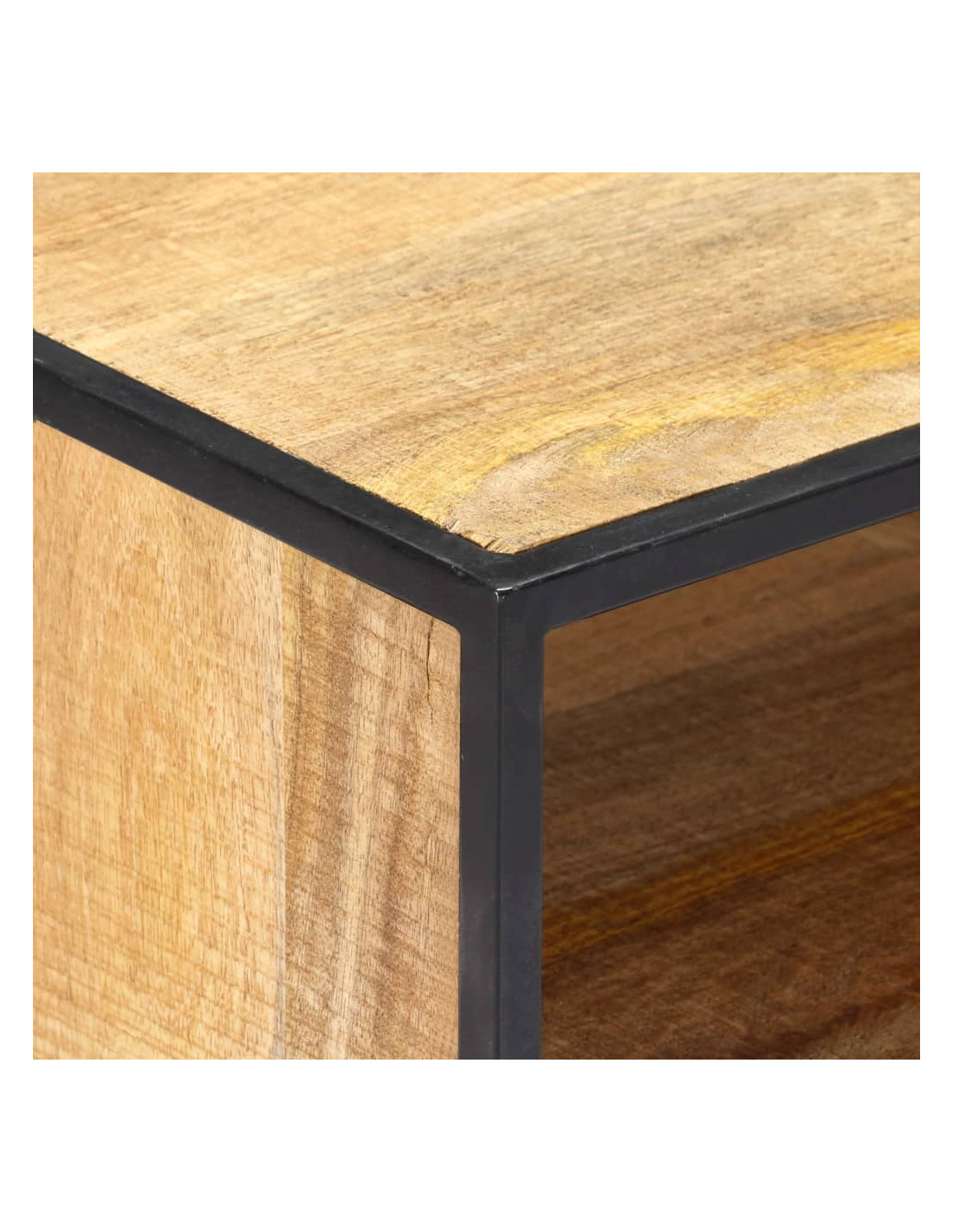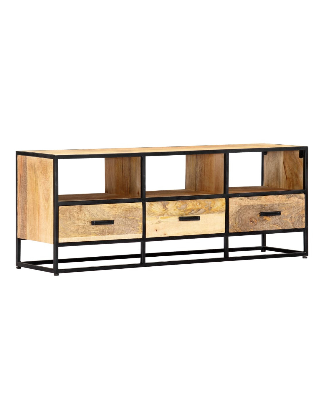 Realizzato in legno massello di mango con finitura naturale, questo mobile per dispositivi multimediali ha un aspetto originale. La squisita fattura e le bellissime venature del legno di mango rendono ogni mobile unico e leggermente diverso da tutti gli altri. Inoltre, il telaio in ferro verniciato a polvere contribuisce a dare robustezza e stabilità e dona uno stile industriale al mobile.