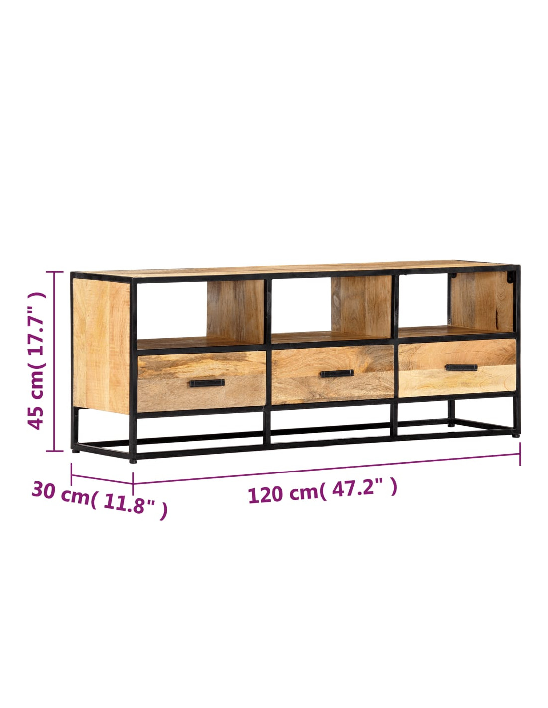 Se state cercando un semplice tocco di fascino rustico e industriale da aggiungere al vostro arredamento interno, il nostro mobile TV in legno massello farà al caso vostro. Dotato di 3 cassetti e 3 ripiani per vari oggetti, questo mobile TV sarà sicuramente un'aggiunta pratica e accattivante nella vostra casa.