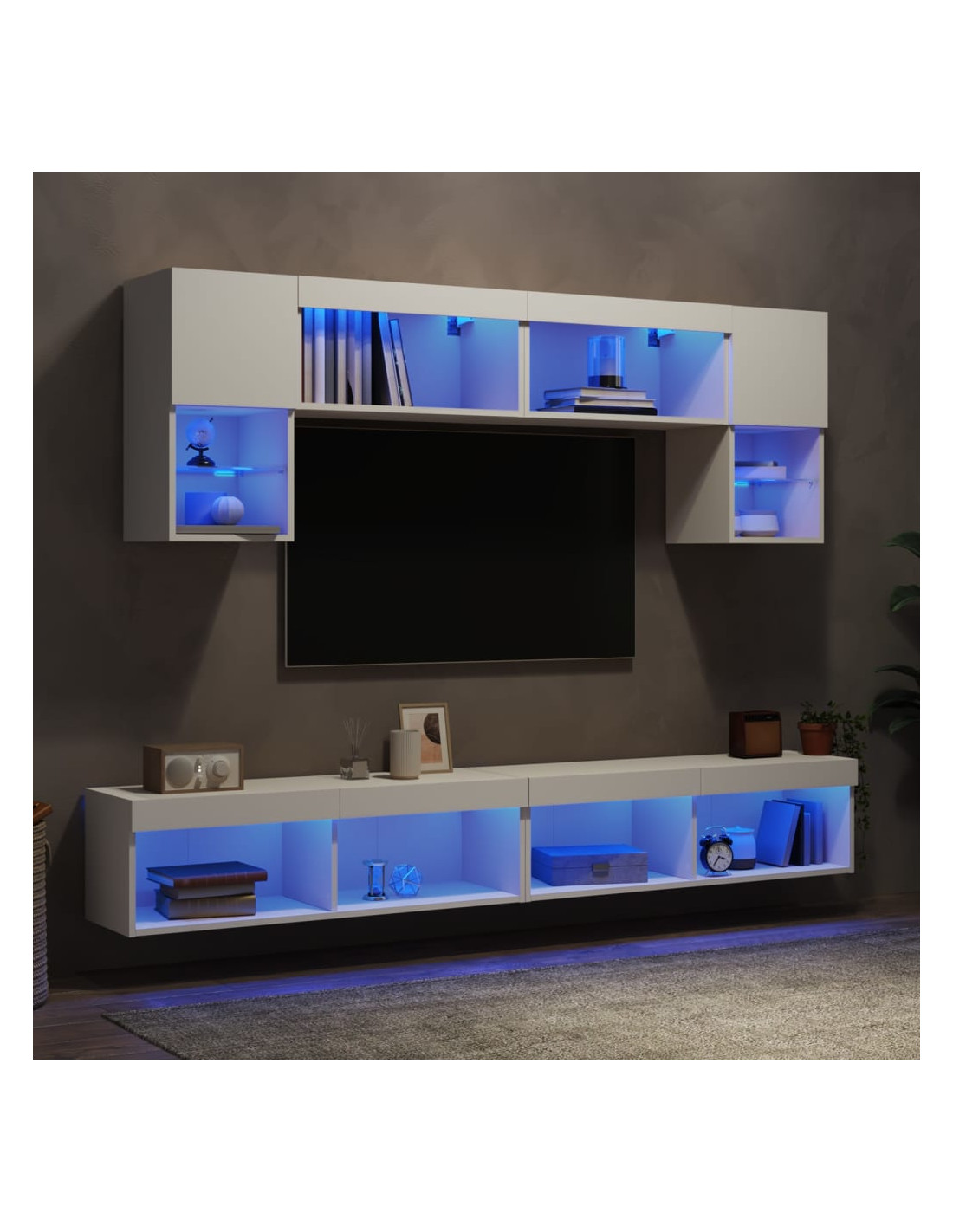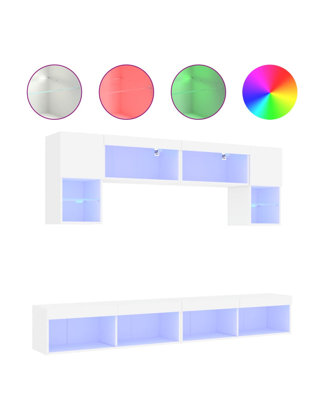 - Luci LED RGB: L'unità porta TV è dotata di vivaci luci LED RGB. Grazie ai vari menu personalizzabili, potete cambiare facilmente il colore delle luci e anche impostare la regolazione automatica. Queste luci LED non solo migliorano l'aspetto contemporaneo del mobile porta TV pensile, ma lo rendono anche di tendenza.