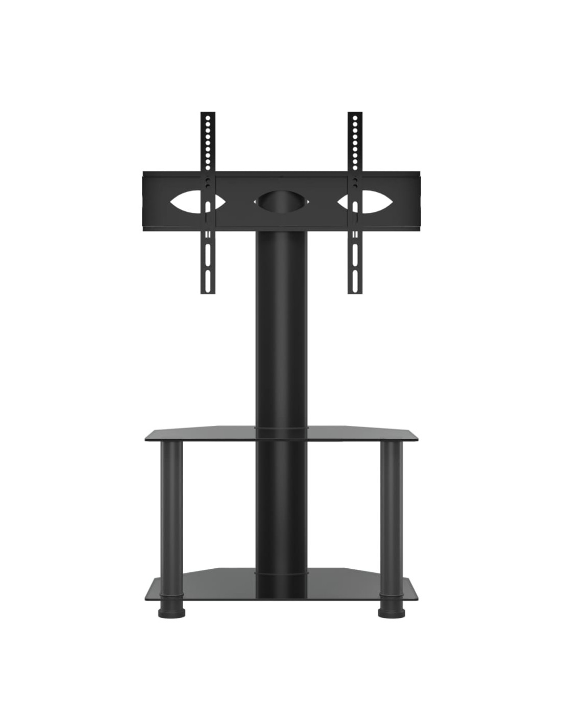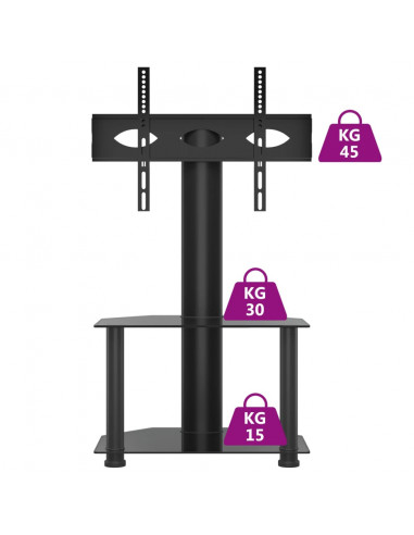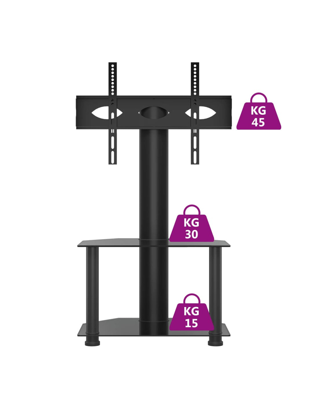 - Assicuratevi che la larghezza della vostra TV sia adatta al supporto TV e che anche l'altezza dalla staffa TV al tavolino in vetro superiore sia adatta alla TV.