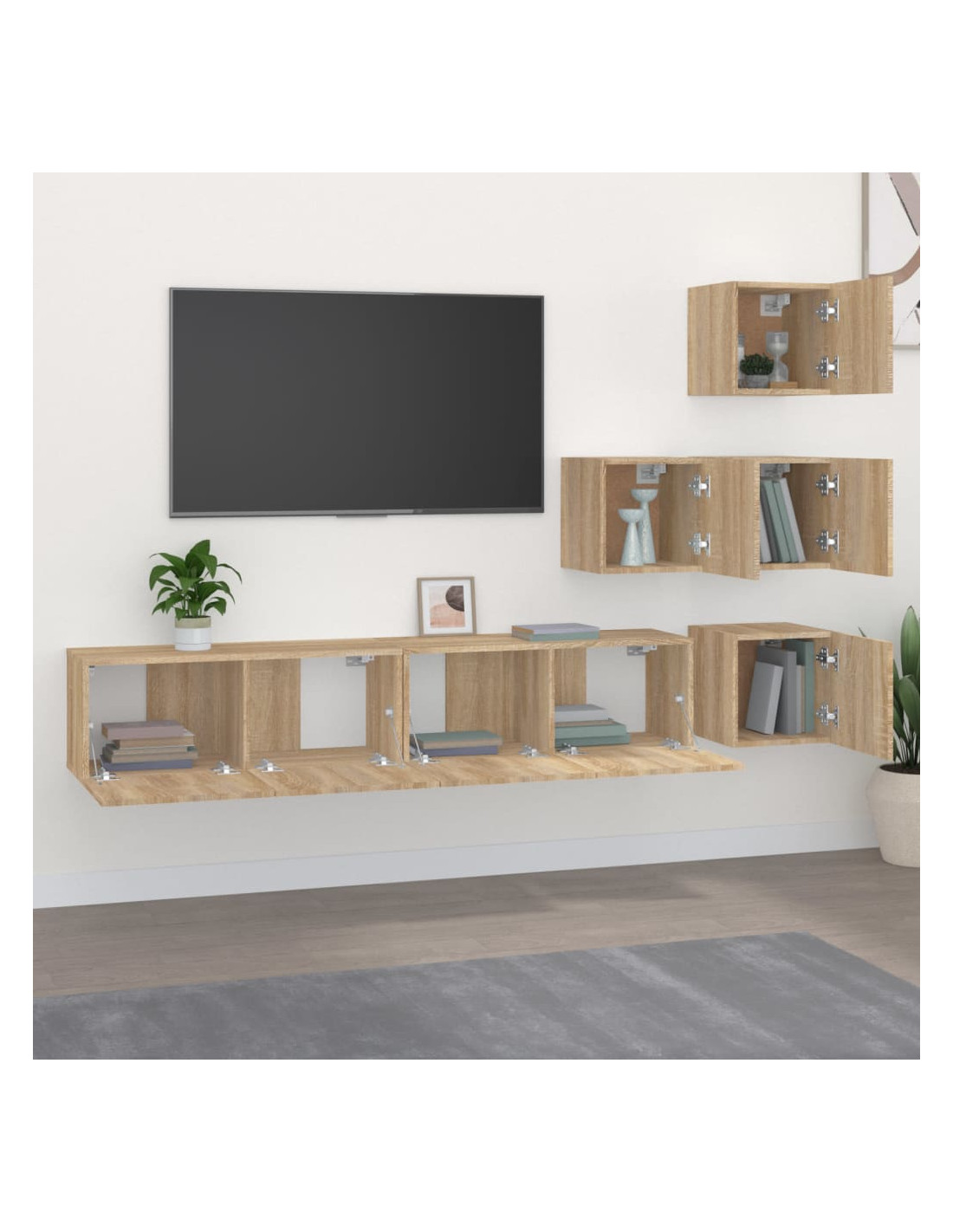 - Design decorativo: Il mobiletto TV sospeso trasforma una parete vuota in una caratteristica di design.