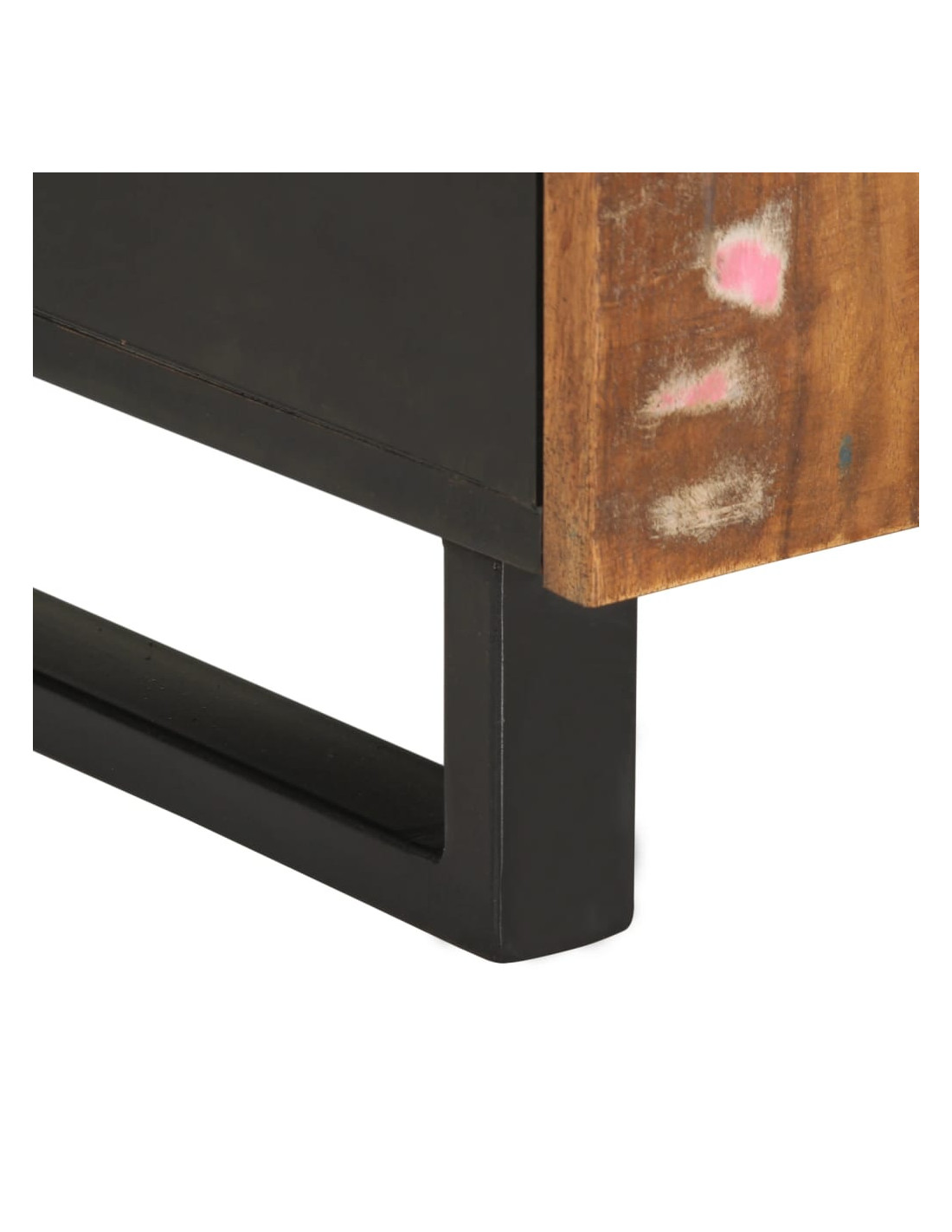- Legno massello di recupero: Questo mobile per dispositivi multimediali è realizzato in legno massello di recupero combinato con il legno multistrato. Il legno massello di recupero è costituito da legni riutilizzati quali il teak, il legno di mango, il legno di pino, e il faggio. Questi materiali sono riciclati da vecchi immobili come fabbriche, capannoni e barche.