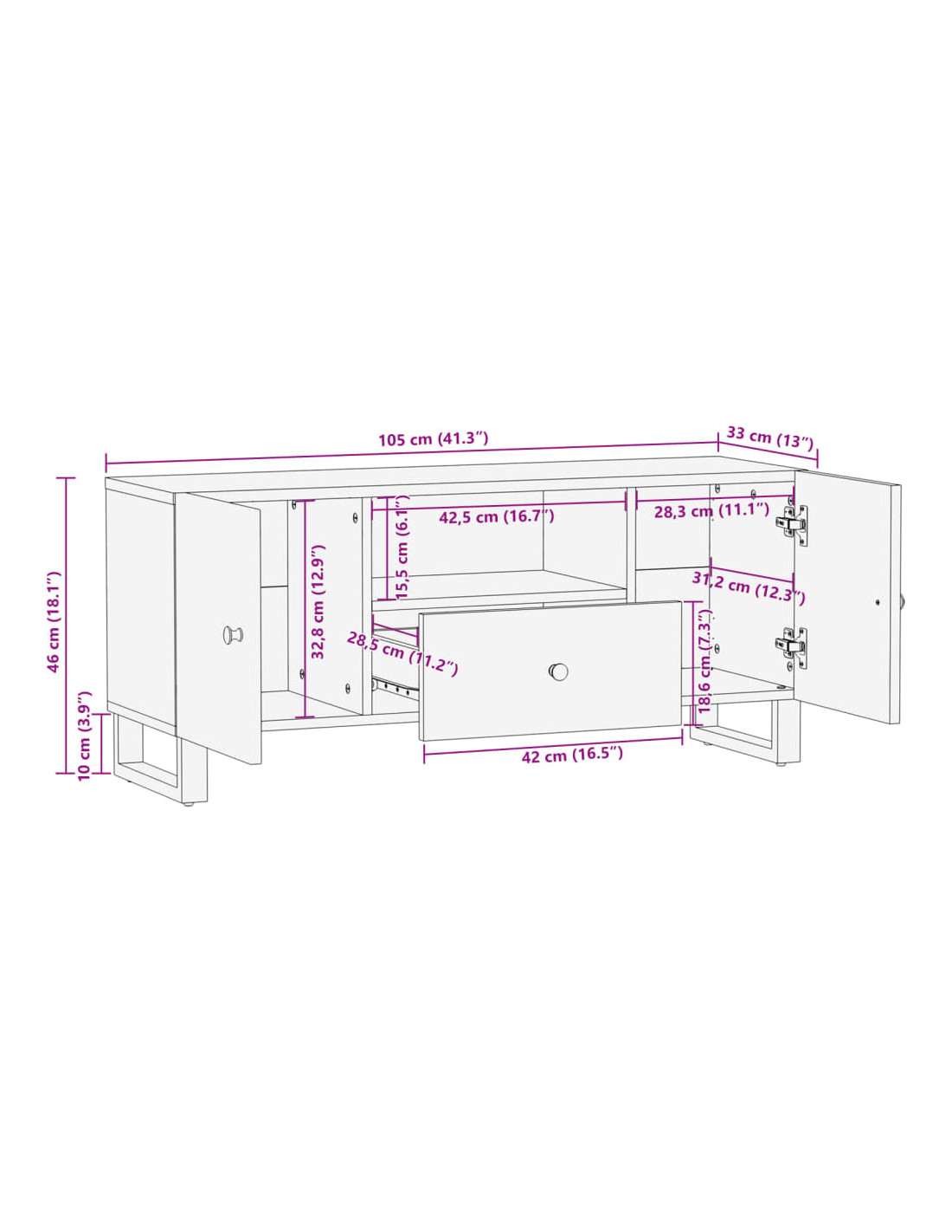 - Dimensioni: 105 x 33,5 x 46 cm (L x P x A)