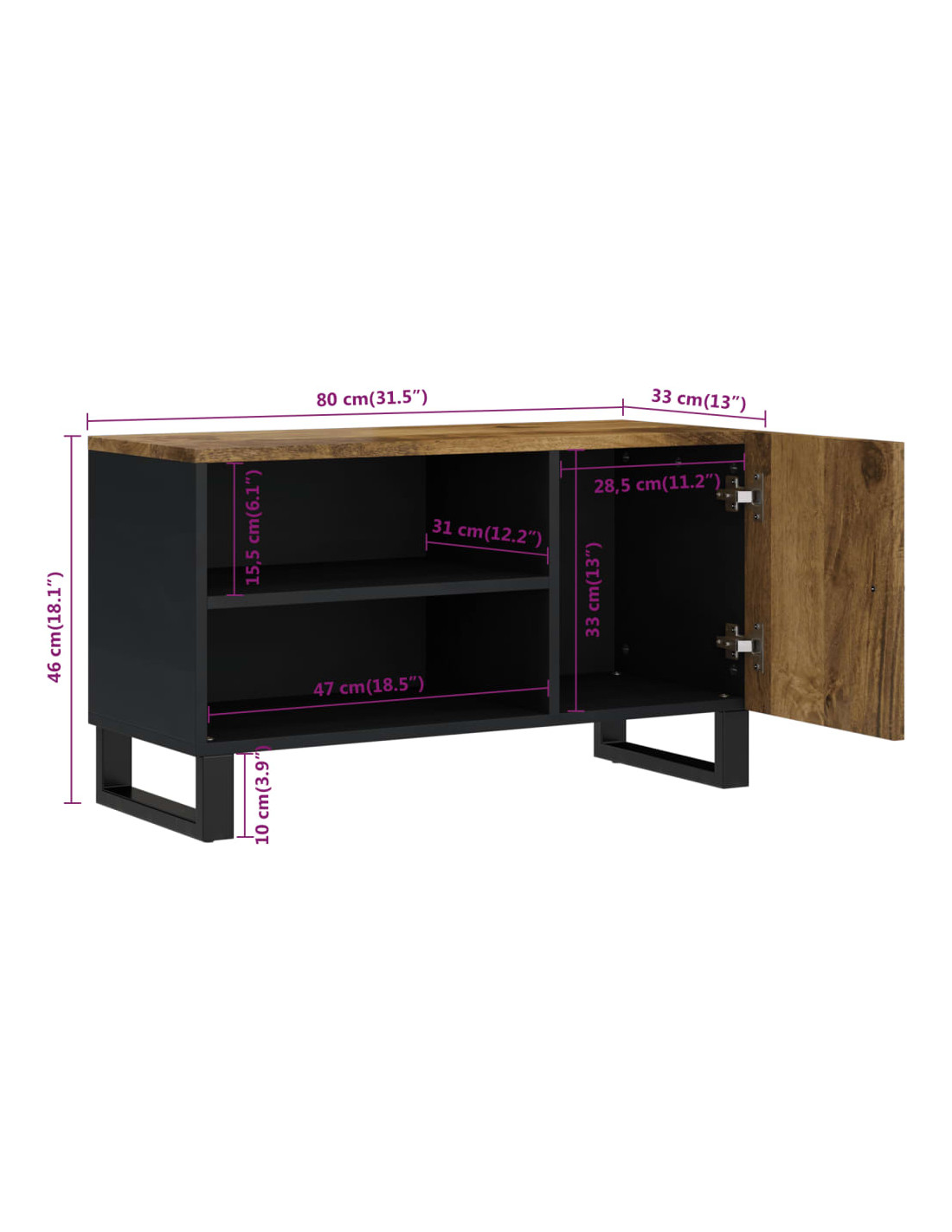 - Legno massello di mango: Questo mobile per dispositivi multimediali è realizzato in legno massello di mango combinato con il legno multistrato. Il legno massello di mango è un legno duro tropicale resistente, che dà vita a mobili robusti. Le belle venature del legno rendono ogni pezzo d'arredamento leggermente diverso dall'altro.