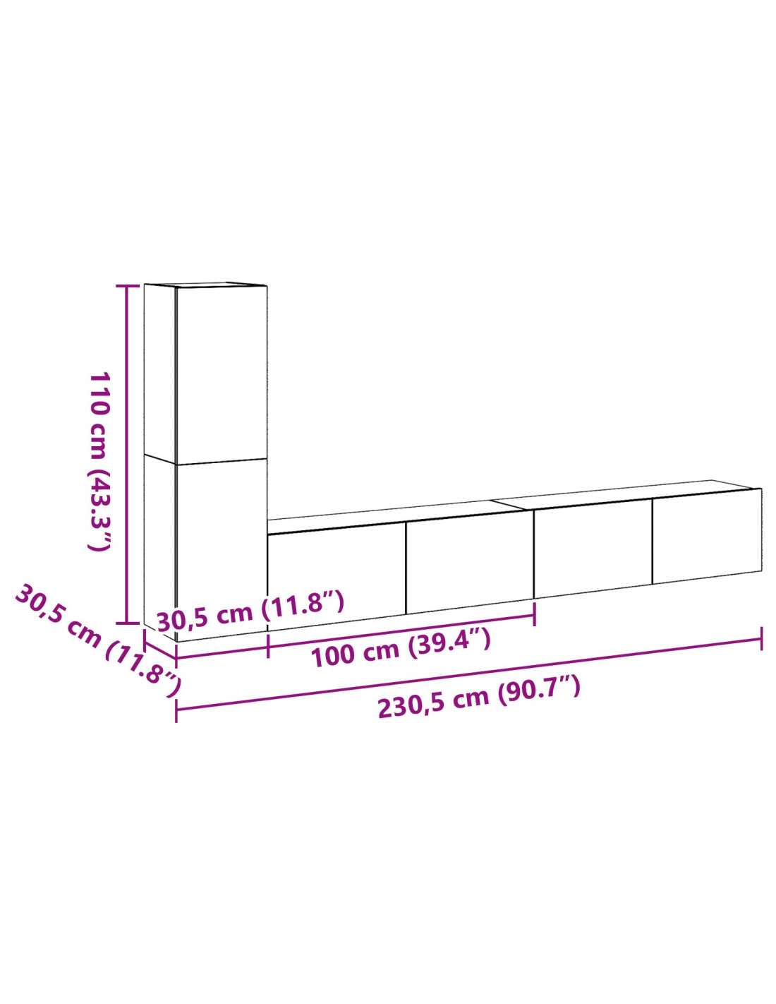 - Dimensioni complessive: 100 x 30 x 30 cm (L x P x A)