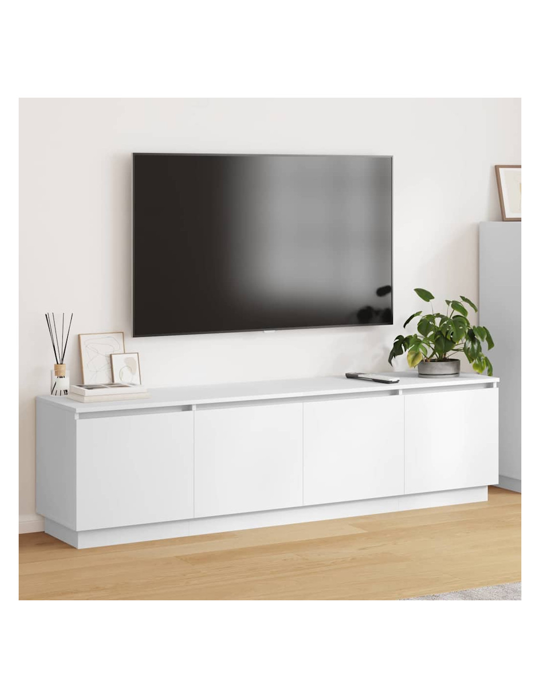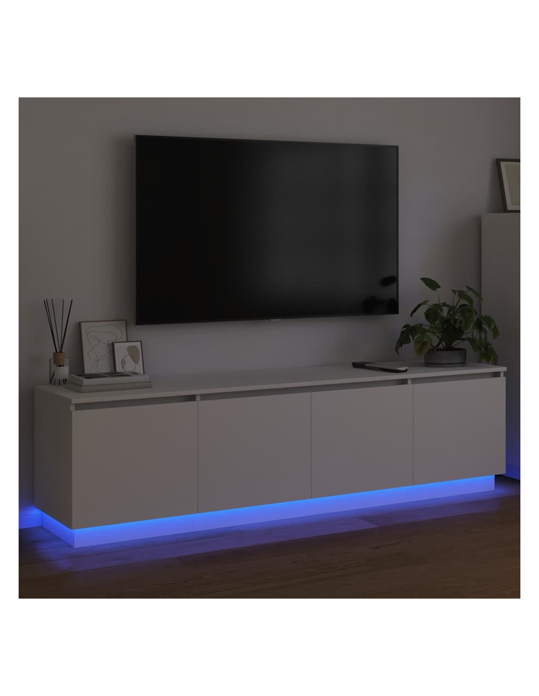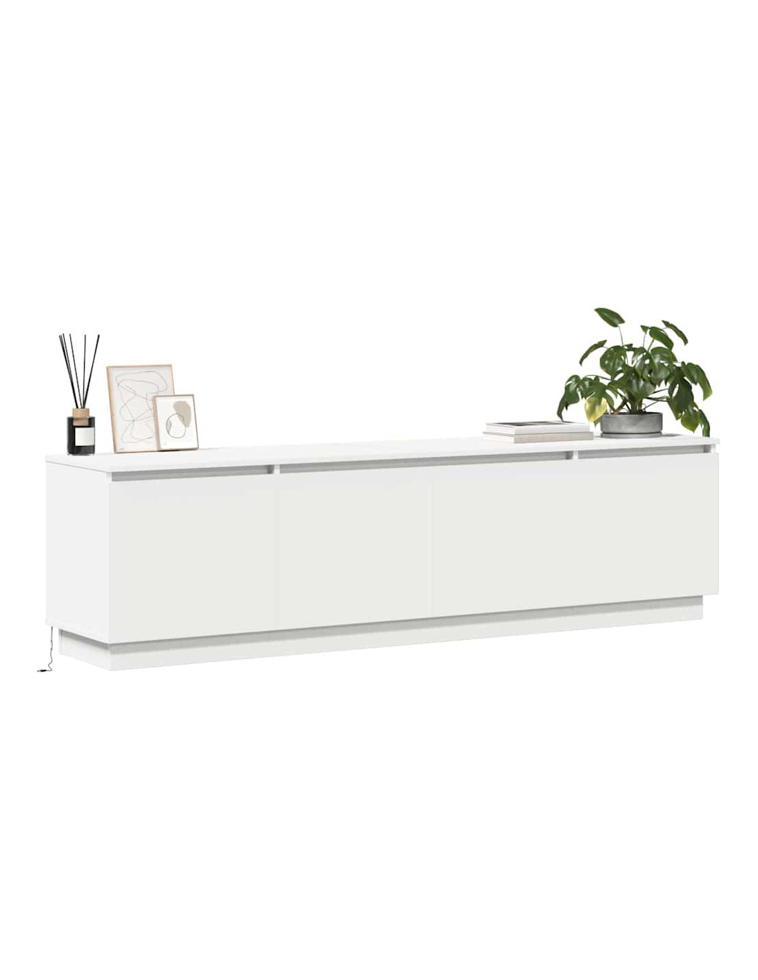 Questo mobile TV combina semplicità e design moderno, funzionando sia come spazio di stoccaggio che come pezzo decorativo nel tuo soggiorno. Le linee eleganti e il design minimalista lo rendono un elemento centrale e pratico negli spazi contemporanei. È perfetto per TV, accessori o libri e la sua illuminazione LED migliora l'atmosfera della stanza. Costruzione in legno ingegnerizzato Questo mobile TV è realizzato in legno ingegnerizzato, resistente e leggero, che si adatta facilmente a vari stili d'interni. È un materiale che resiste all'usura quotidiana, garantendo affidabilità e durabilità. Strisce LED Le strisce LED integrate possono essere posizionate attorno al mobile per creare un'atmosfera dinamica, perfetta per film o per mettere in mostra i tuoi oggetti preferiti. L'alimentazione USB offre flessibilità e una buona efficienza energetica. Accesso con porta a cerniera Il sistema di porte a cerniera rende facile accedere agli oggetti conservati. Questo design mantiene tutto in ordine e consente di avere un aspetto pulito e curato. Stile moderno Il design moderno è caratterizzato da linee pulite e un tocco minimalista, che ben si integra negli spazi contemporanei senza essere invadente. Istruzioni per la cura Per mantenere il mobile come nuovo, basta pulirlo con un panno umido. Questa cura semplice garantirà che si presenti sempre al meglio, risultando un'aggiunta elegante al tuo soggiorno.
