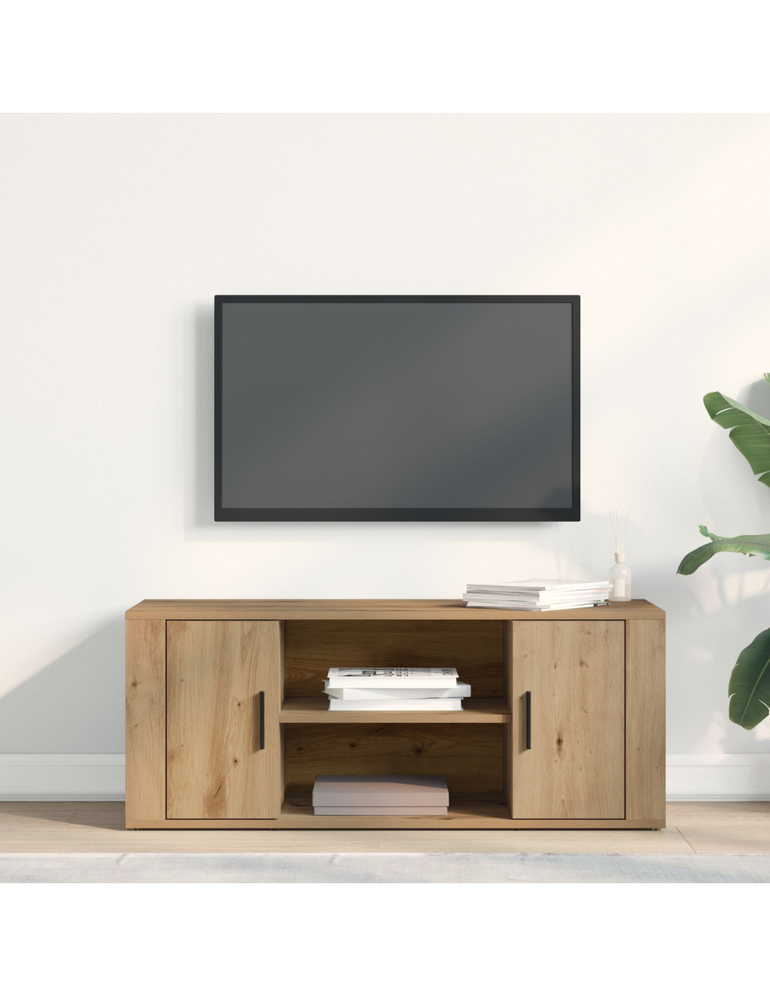 - Capacità di stoccaggio personalizzabile: con mensole in legno spaziose, il mobile ti offre un modo versatile per tenere in ordine elettronica, libri o decorazioni. Queste mensole combinano funzionalità e stile, supportandoti nel mantenere un ambiente pulito, mentre esprimi il tuo gusto personale. Le mensole in legno ingegnerizzato sono resistenti e facili da usare.