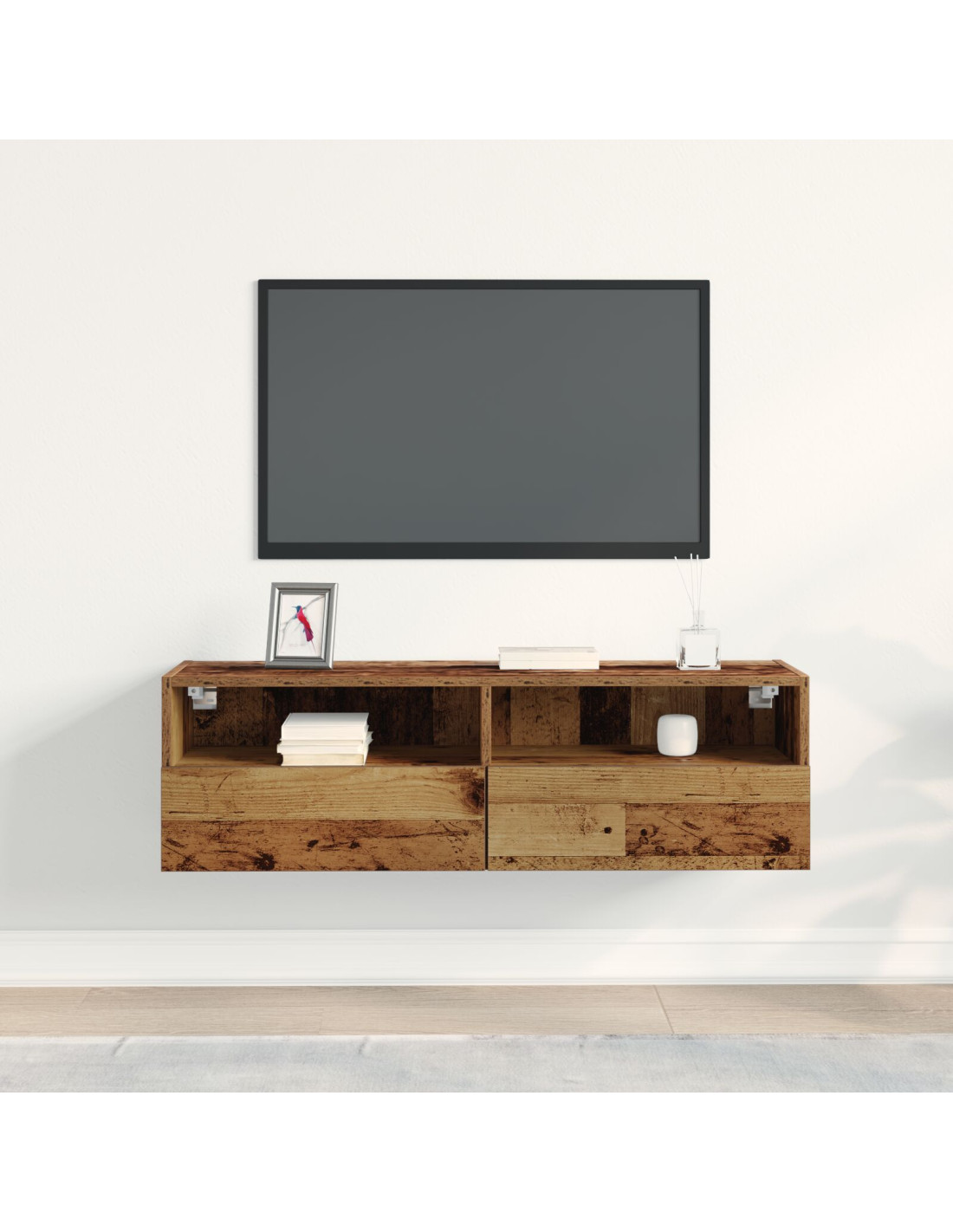 - Ripiani Funzionali: I ripiani in legno ingegnerizzato offrono un modo pratico per organizzare i tuoi elettronici o oggetti decorativi. Questi ripiani facilitano la sistemazione dell'essenziale soggiornando stilosi.