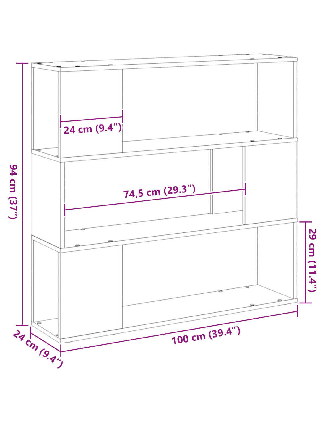 - Dimensioni complessive: 100 x 24 x 94 cm (L x P x A)