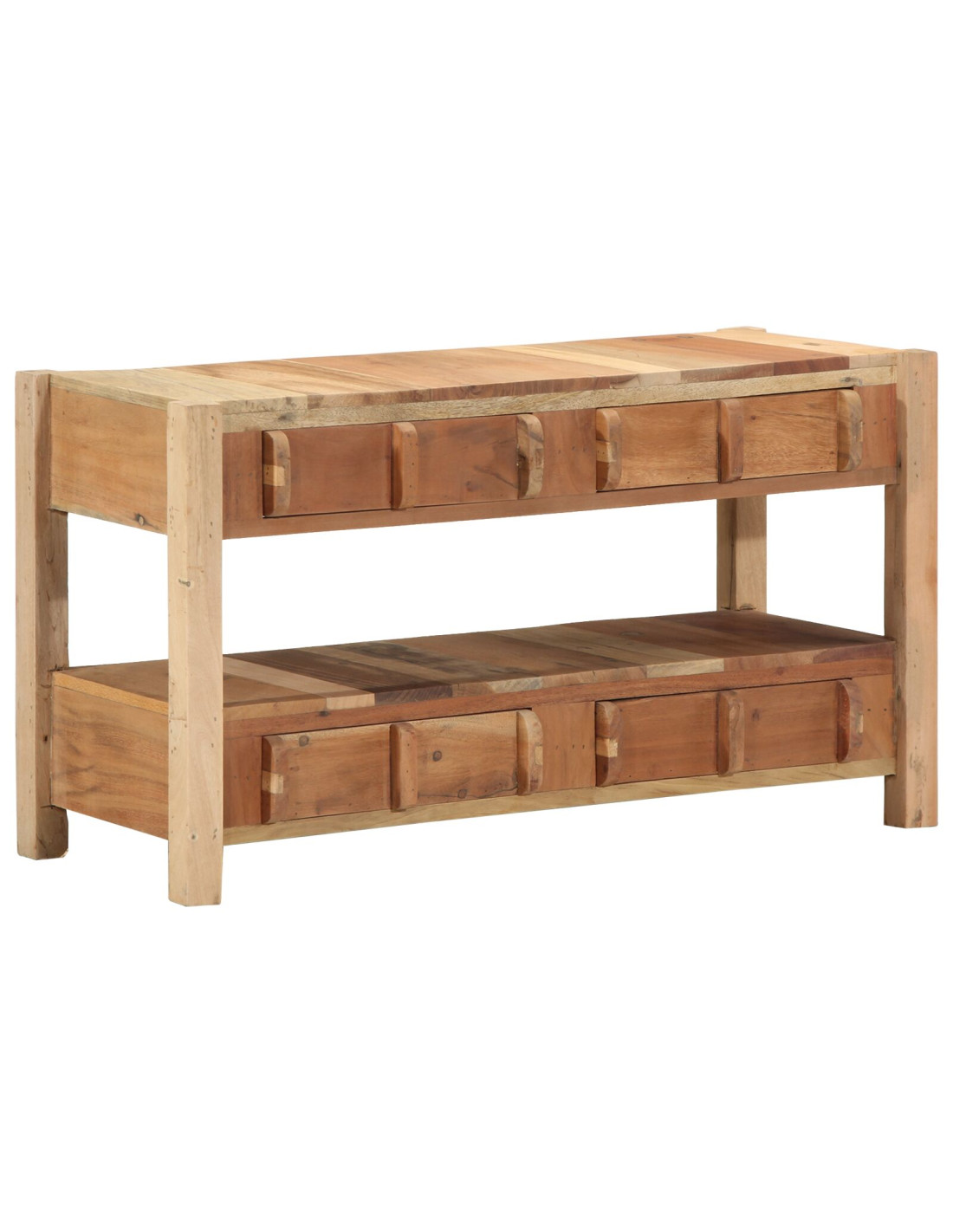 - Cassetti multifunzionali Ha diversi cassetti in legno massello di recupero, perfetti per riporre telecomandi e DVD, tenendo il tuo spazio ordinato. Il caldo tono marrone regala un fascino senza tempo, arricchendo l’atmosfera e facilitando l’organizzazione. L’apertura fluida dei cassetti rende semplice trovare ciò che cerchi, aumentando la praticità nella vita quotidiana.