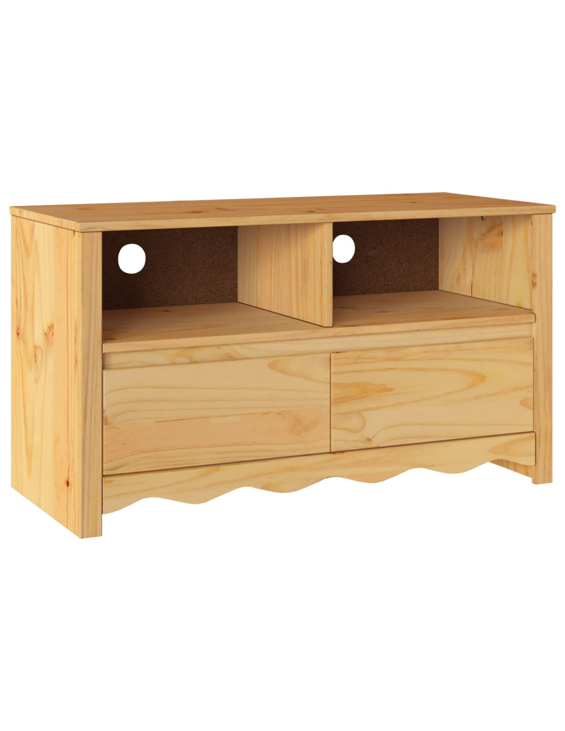 - Costruzione in Pino Massello: Questo mobile TV è in legno massello di pino, conosciuto per la sua resistenza e durata. Questo materiale garantisce che sia abbastanza forte per reggere TV e gadget pesanti senza problemi. Inoltre, il legno porta un tocco caldo al tuo soggiorno, unendo praticità e bellezza.