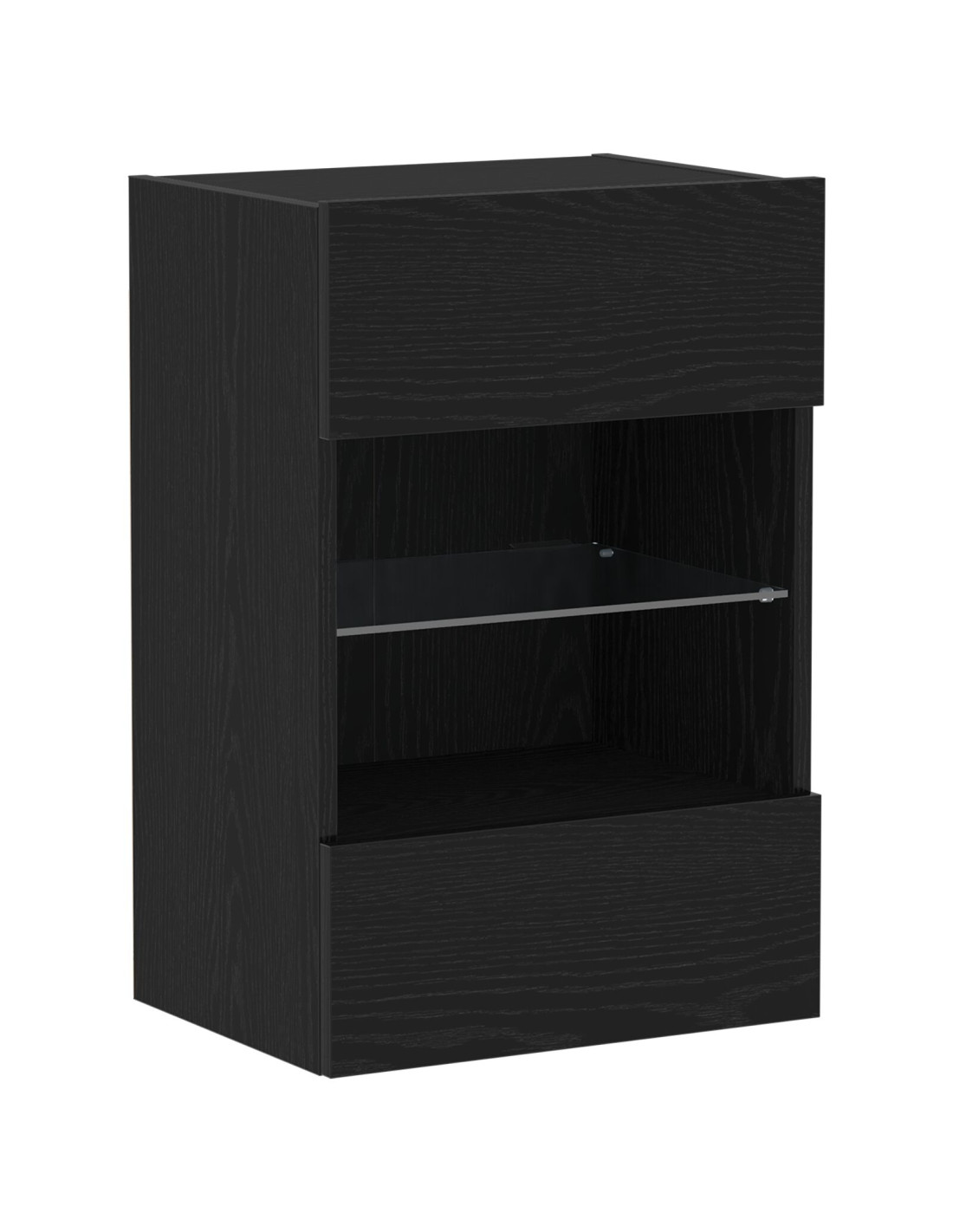- Componenti funzionali: Include porte a filo per un facile accesso a ciò che stai riponendo. I ripiani spaziosi offrono tanto spazio per elettronica, media e oggetti personali. Un elemento chiave è l'illuminazione LED: una striscia LED multicolore alimentata via USB per creare un'atmosfera accogliente e visivamente piacevole.