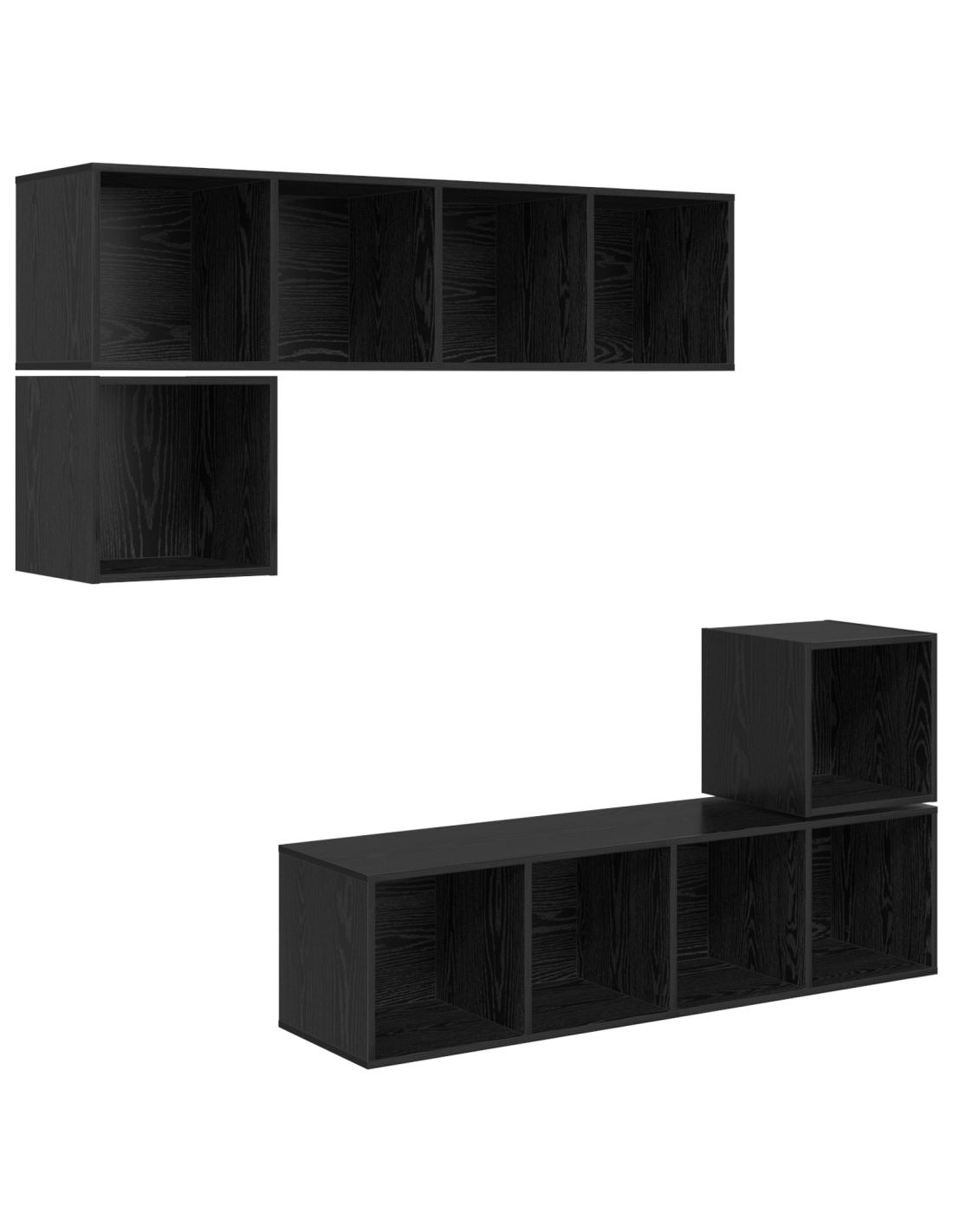 - Componenti & Funzionalità: Ogni unità ha ripiani in pannello, offrendo spazio versatile per i tuoi dispositivi e oggetti decorativi. Il design a parete ottimizza l'area, riducendo il disordine e massimizzando lo spazio libero.