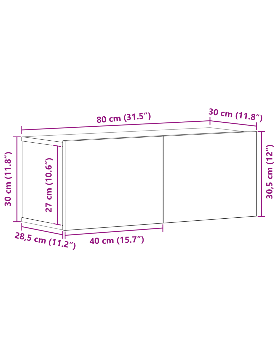 - 1 x armadietto TV: 30,5 x 30 x 90 cm (LxWxH)