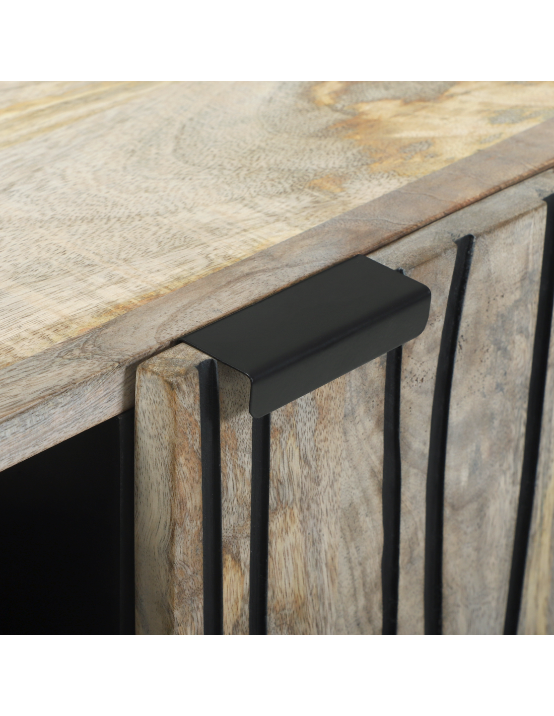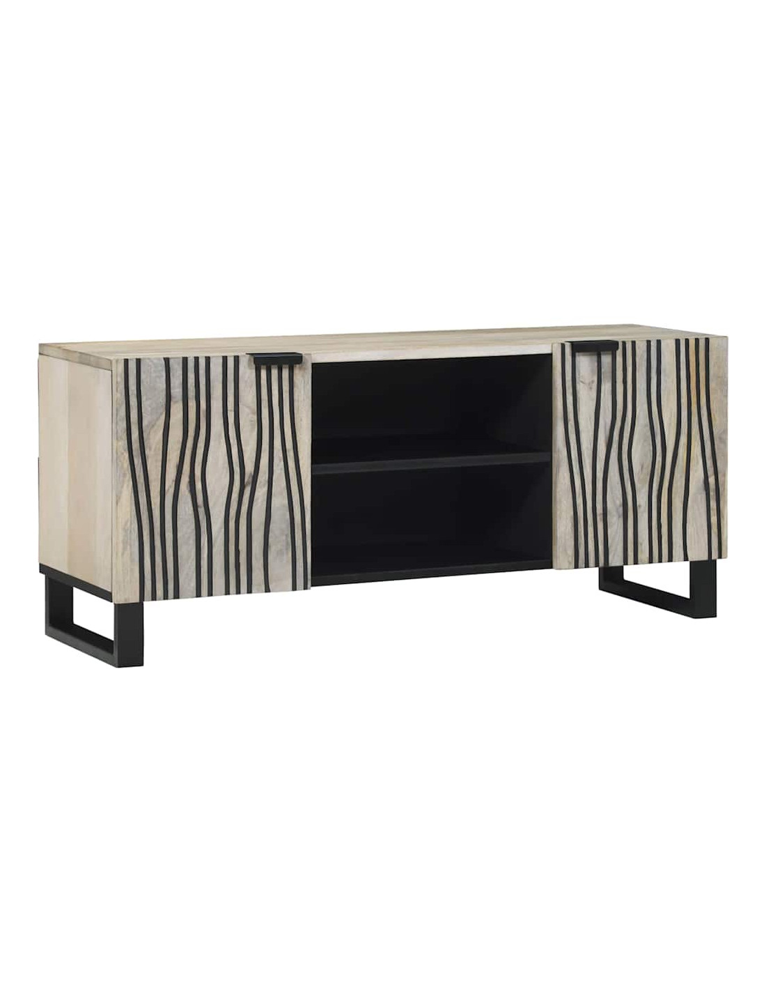 - Ripiani spaziosi: Dotata di ripiani in pannello, questa unità offre tanto spazio di stoccaggio per i tuoi dispositivi e decorazioni. Progettata per sistemare vari oggetti senza creare disordine, i ripiani aumentano la funzionalità dell'unità mantenendo un profilo slim e moderno.