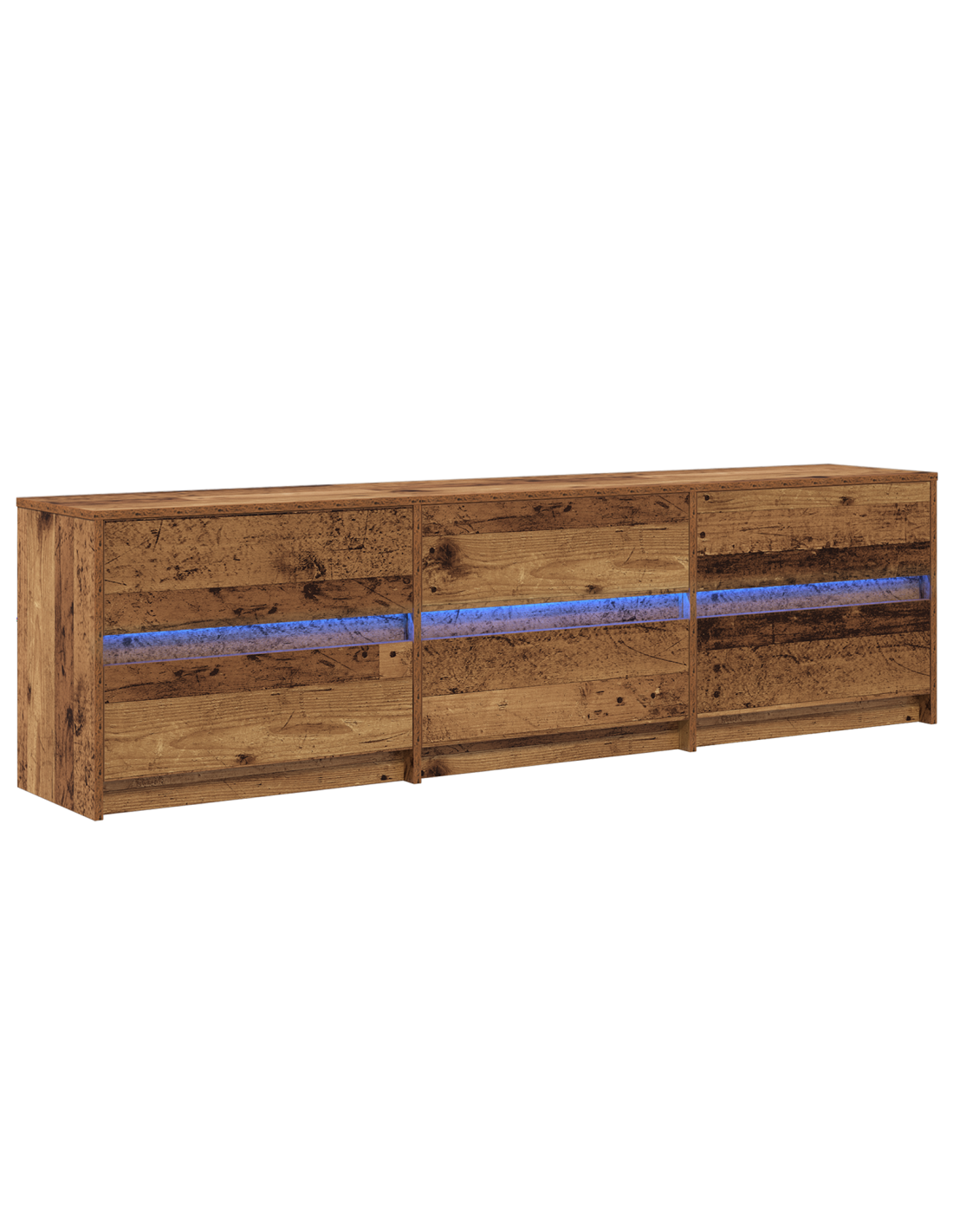 - Accenti luminosi LED: Con illuminazione LED blu, il mobile TV offre un'atmosfera accogliente che arricchisce l'esperienza visiva e mette in risalto il tuo setup con stile. Crea un ambiente raffinato, rendendo il soggiorno un posto dove rilassarsi.