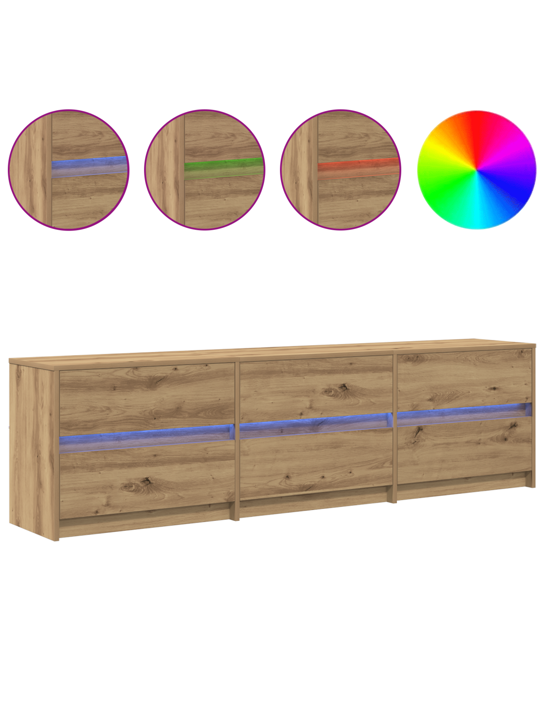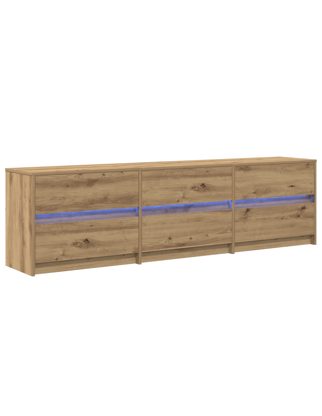 - Accenti luminosi LED: Con illuminazione LED blu, il mobile TV offre un'atmosfera accogliente che arricchisce l'esperienza visiva e mette in risalto il tuo setup con stile. Crea un ambiente raffinato, rendendo il soggiorno un posto dove rilassarsi.