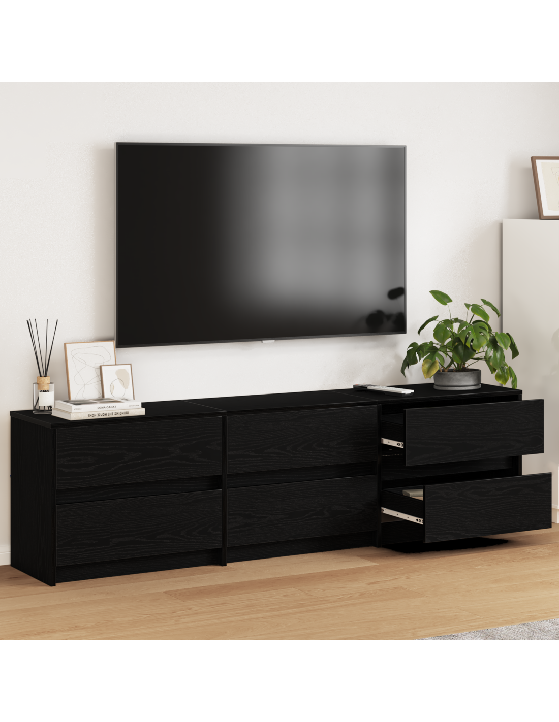 - Legno ingegnerizzato di qualità: Questo mobile TV è fatto con legno ingegnerizzato robusto, quindi è stabile e resistente. La superficie liscia contribuisce al suo look moderno. È il giusto mix di stile e praticità per l’uso quotidiano.