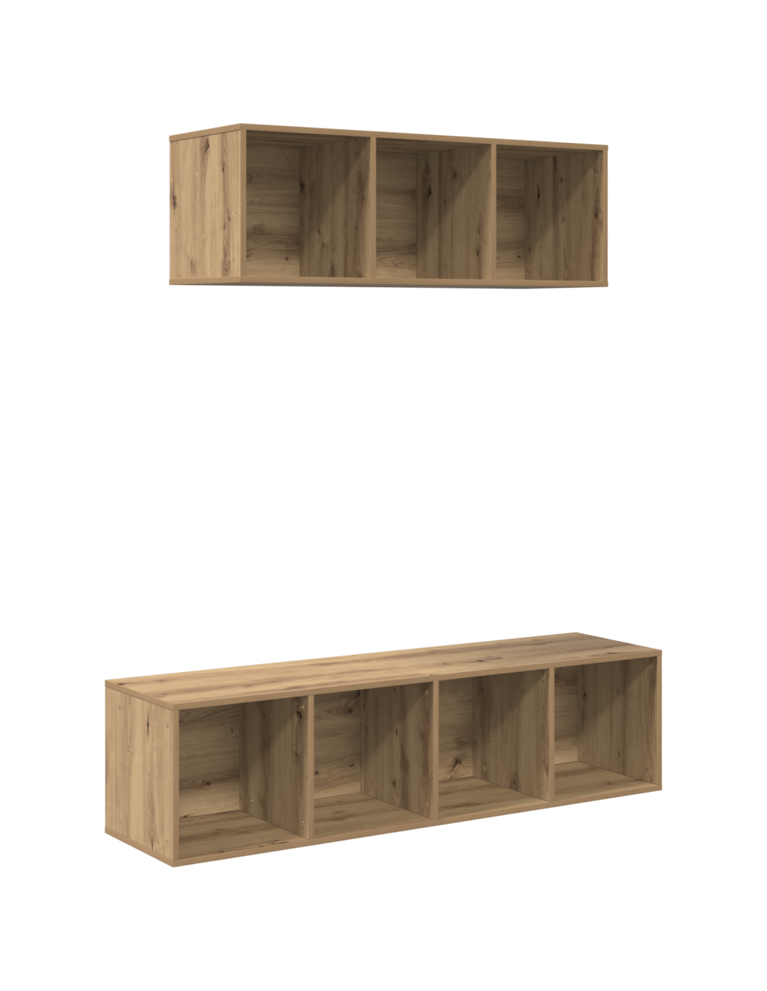 Questo set di armadi TV da parete è il tocco perfetto per ogni soggiorno moderno. Combina stile e praticità senza sforzo, risparmiando spazio sul pavimento grazie al design a parete. Si adatta bene agli interni moderni, con forme pulite e un legno ingegnerizzato resistente che unisce durabilità e un look elegante. Ideale per chi ama un ambiente ordinato e minimalista.
