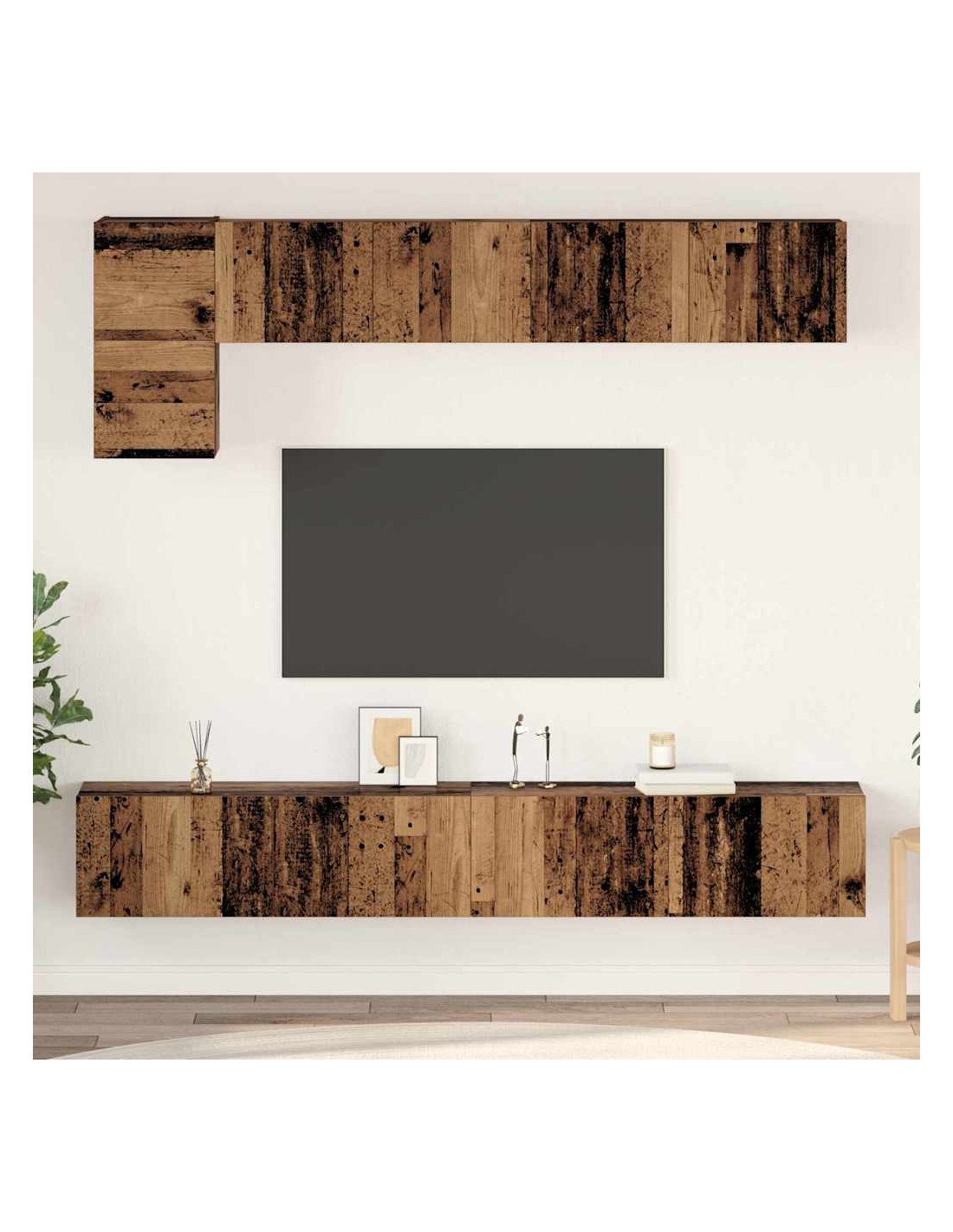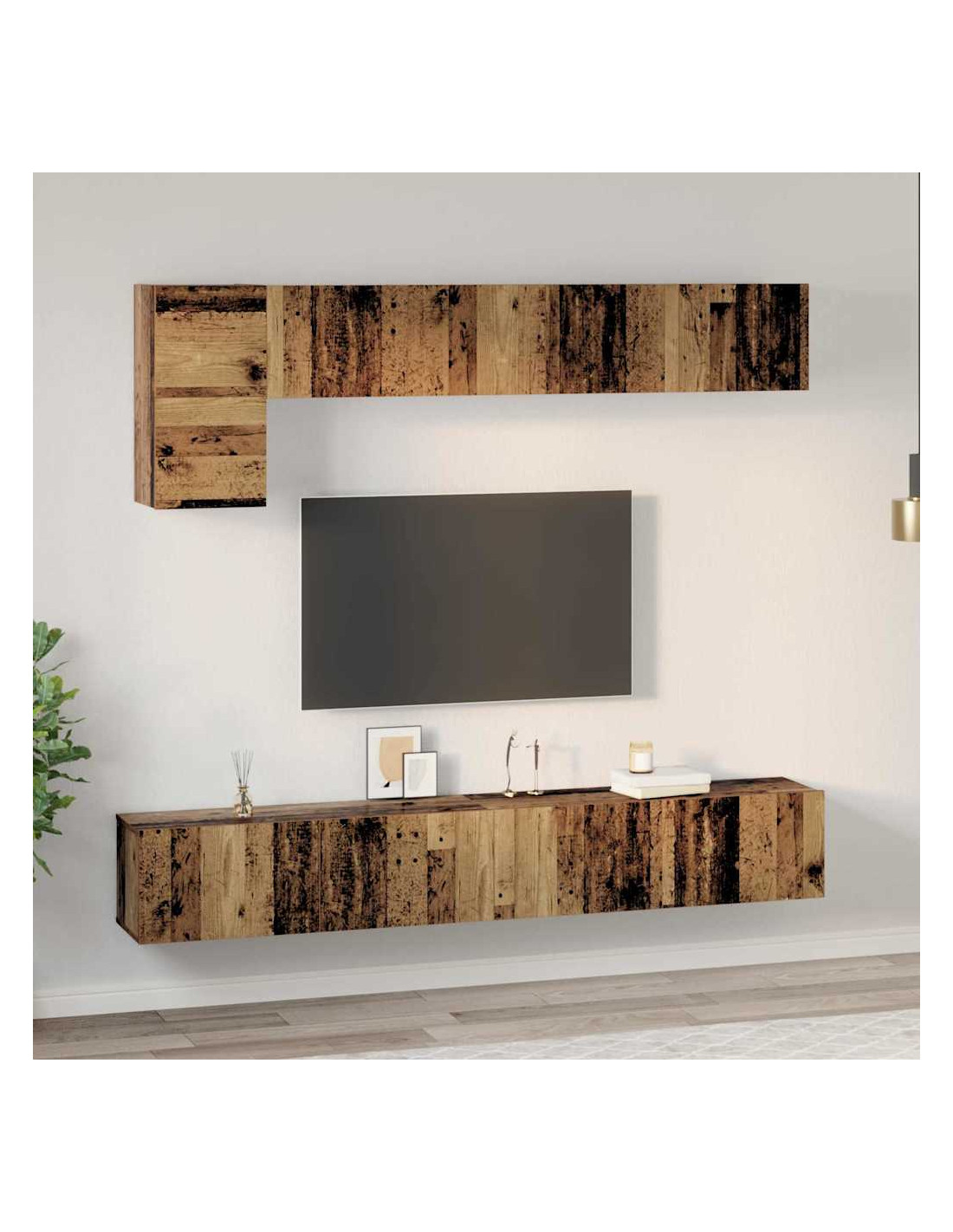 Questo set di armadi TV da parete porta un tocco moderno in qualsiasi soggiorno, unendo design elegante e stoccaggio intelligente. La forma rettangolare e lo stile minimalista sono perfetti per interni contemporanei, mentre il montaggio a parete mantiene il pavimento ordinato, rendendo lo spazio più aperto e accogliente.