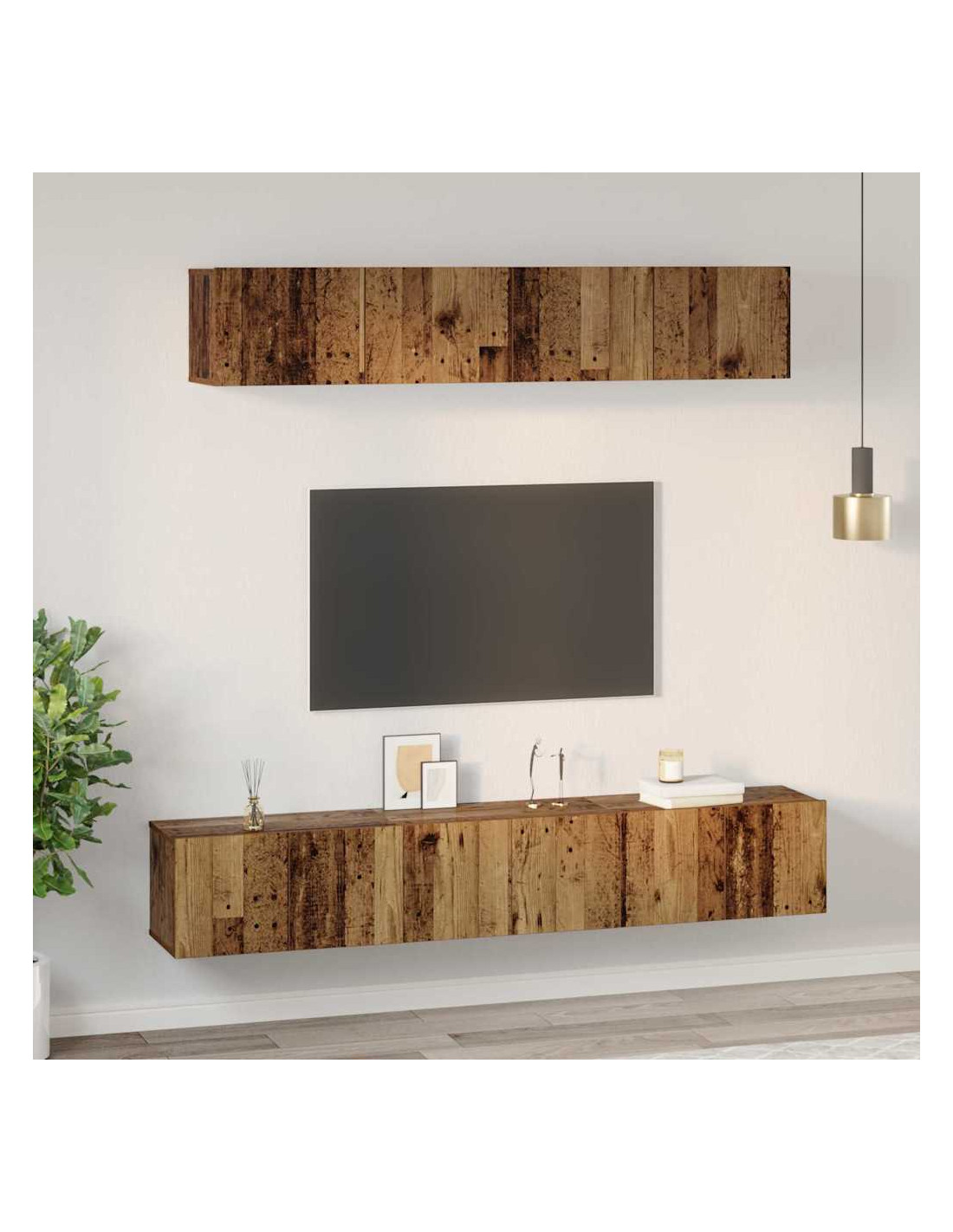 Questo set di armadi TV da parete porta un tocco moderno in qualsiasi soggiorno, unendo design elegante e stoccaggio intelligente. La forma rettangolare e lo stile minimalista sono perfetti per interni contemporanei, mentre il montaggio a parete mantiene il pavimento ordinato, rendendo lo spazio più aperto e accogliente.