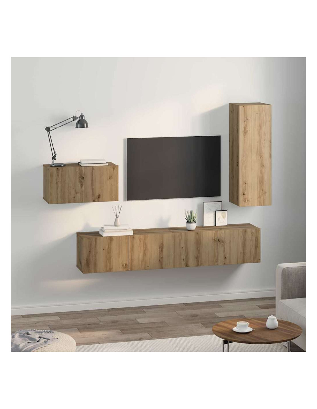 Questo Set di Mobile TV da Parete unisce uno stile moderno e praticità, ideale per migliorare il tuo living e offrire ampio spazio senza compromettere l'estetica. Il suo design sleek e rettangolare si sposa bene con l'arredamento contemporaneo e il legno ingegnerizzato gli dona un'eleganza sobria. Perfetto per gli spazi urbani dove efficienza e stile sono indispensabili, offre una soluzione chic per le tue necessità di stoccaggio e display.