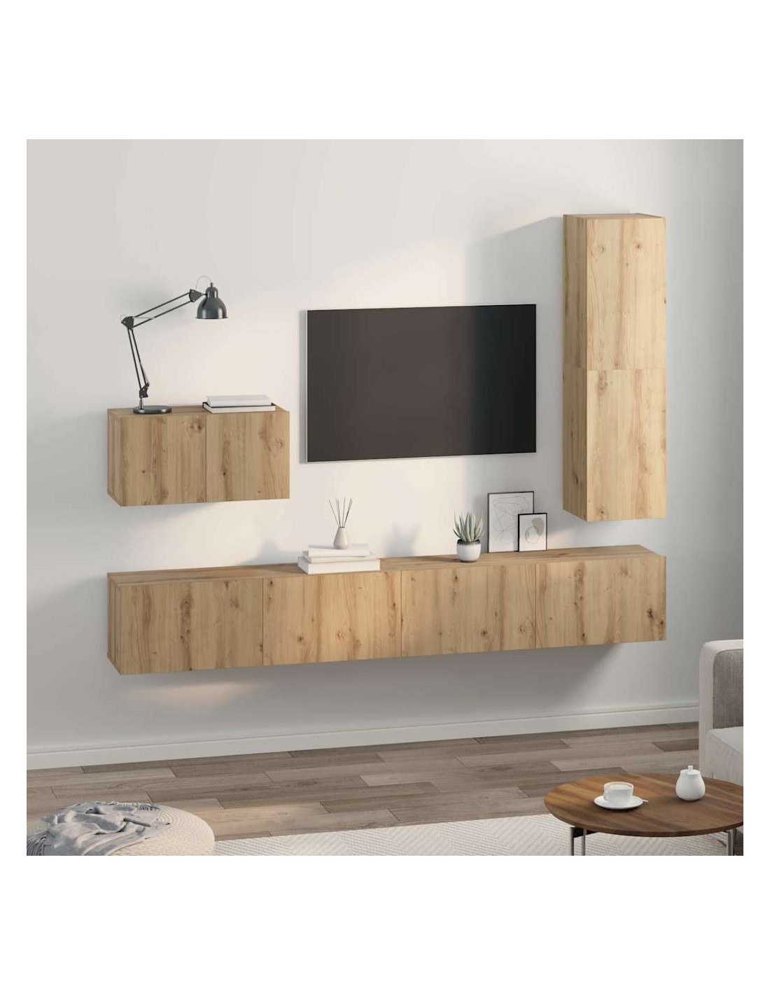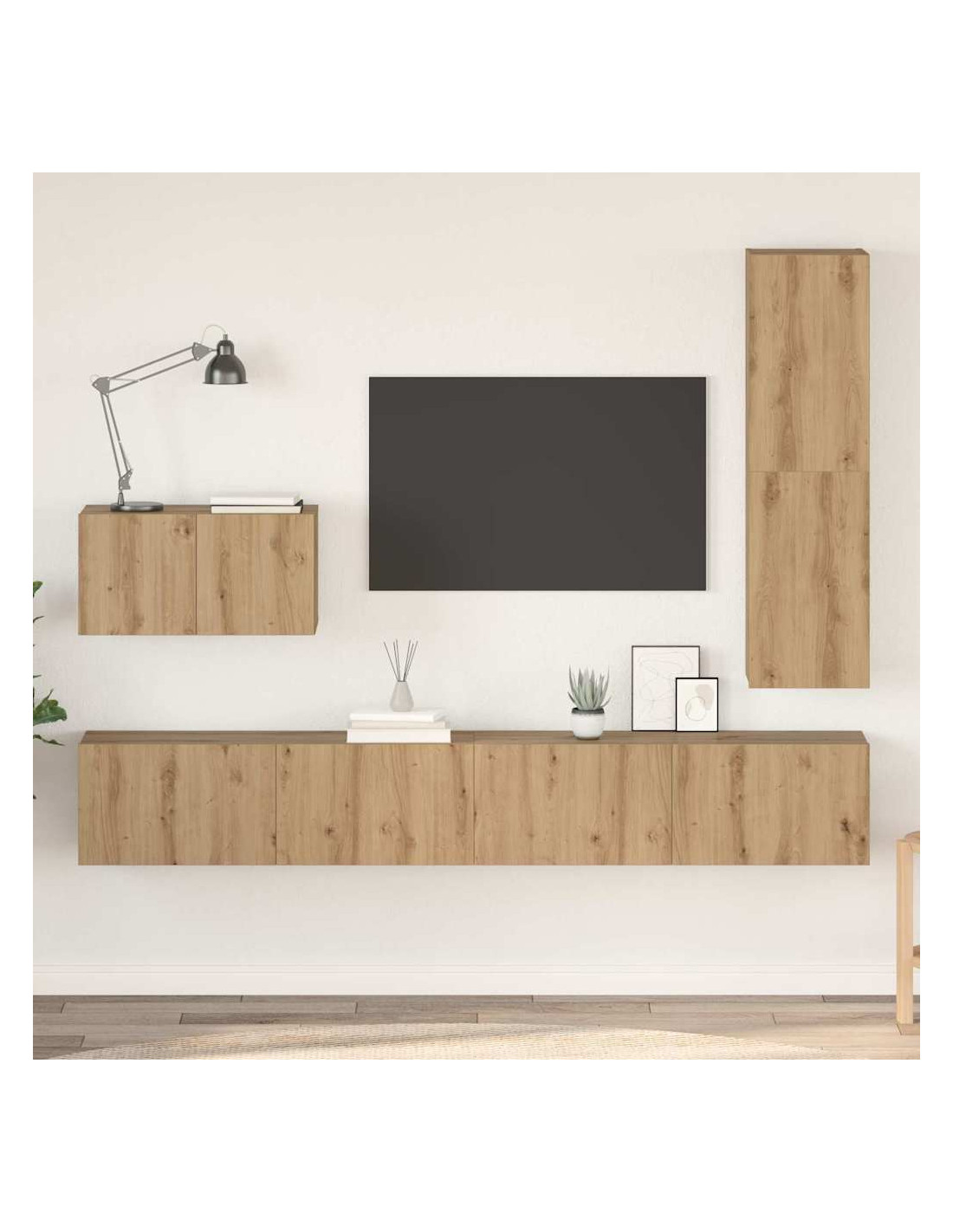 Questo Set di Mobile TV da Parete unisce uno stile moderno e praticità, ideale per migliorare il tuo living e offrire ampio spazio senza compromettere l'estetica. Il suo design sleek e rettangolare si sposa bene con l'arredamento contemporaneo e il legno ingegnerizzato gli dona un'eleganza sobria. Perfetto per gli spazi urbani dove efficienza e stile sono indispensabili, offre una soluzione chic per le tue necessità di stoccaggio e display.
