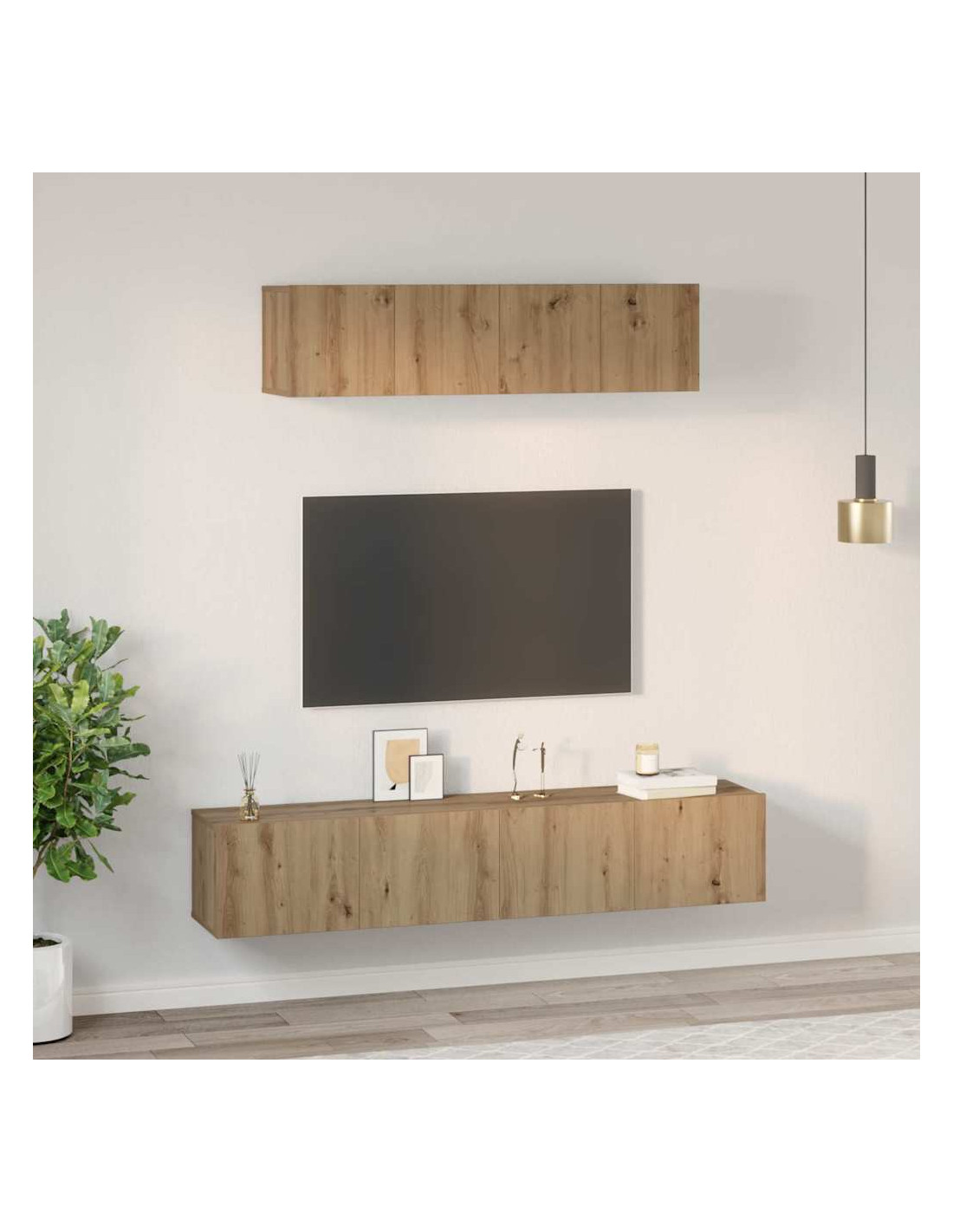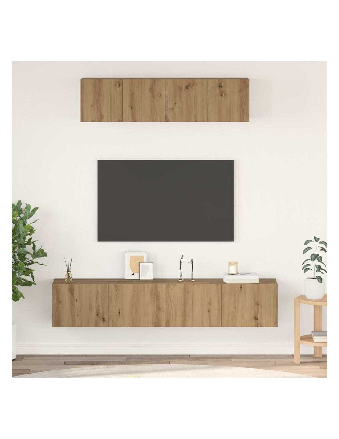 Questo set di mobili per TV a parete mescola un design moderno con funzionalità pratiche, adattandosi benissimo a qualsiasi soggiorno. Fatti in legno ingegnerizzato, le sue linee pulite e lo stile minimalista si adattano perfettamente a contesti contemporanei, ottimizzando il tuo spazio e offrendoti tanto spazio per riporre tutto.