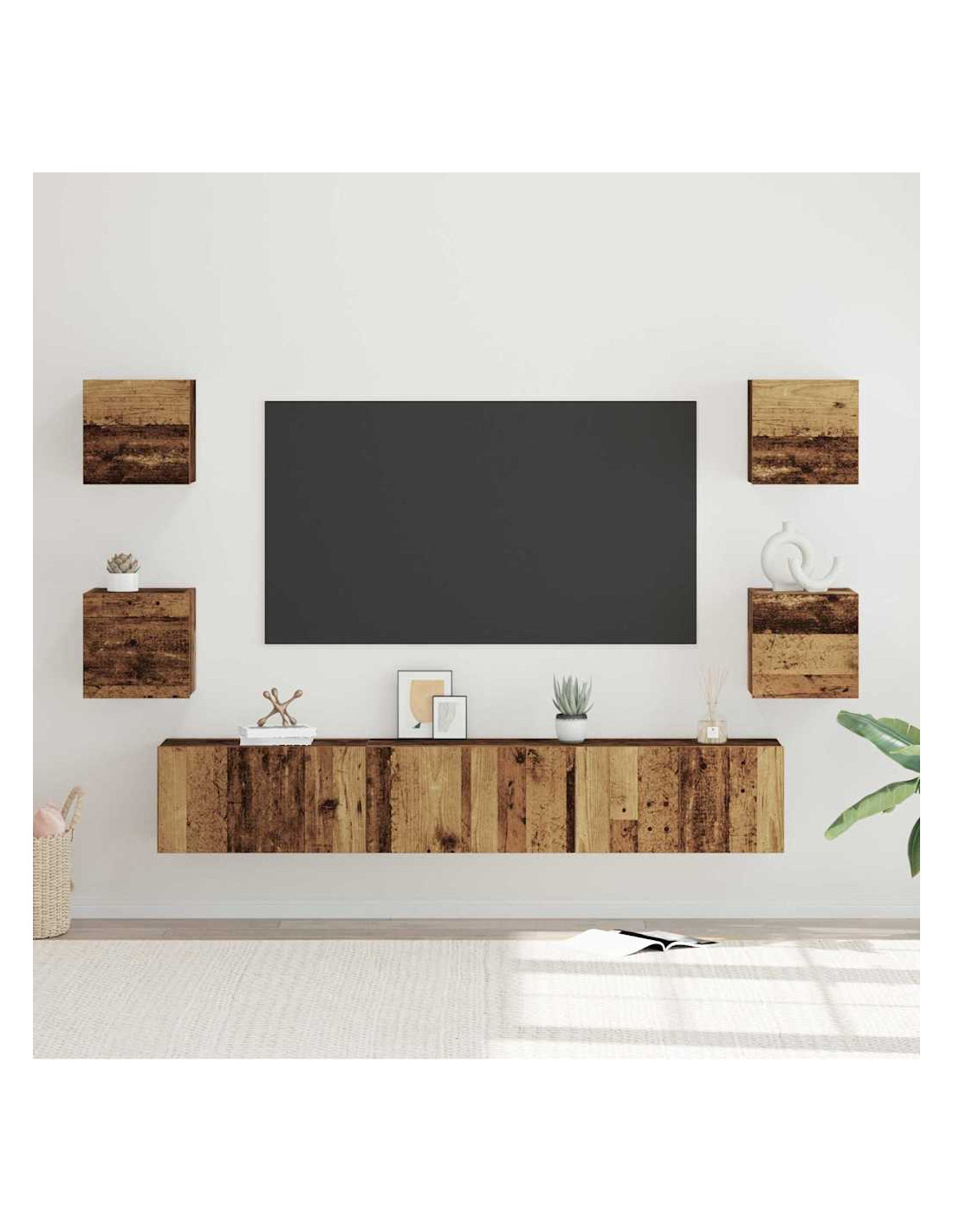 Questo set di mobili TV da montare a parete trasforma ogni soggiorno, mescolando stile moderno e soluzioni pratiche. Salva spazio montandosi sulla parete, creando spazio per l'intrattenimento e le decorazioni. La forma rettangolare rende tutto elegante, perfetta per chi ama linee pulite e mobili funzionali. Con il suo aspetto semplice, è ideale per case minimaliste.