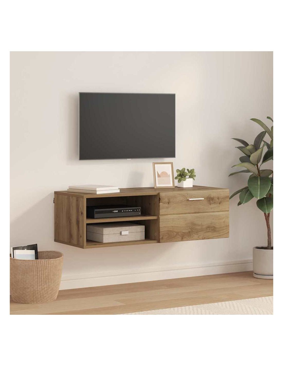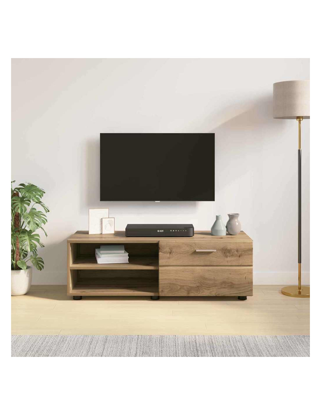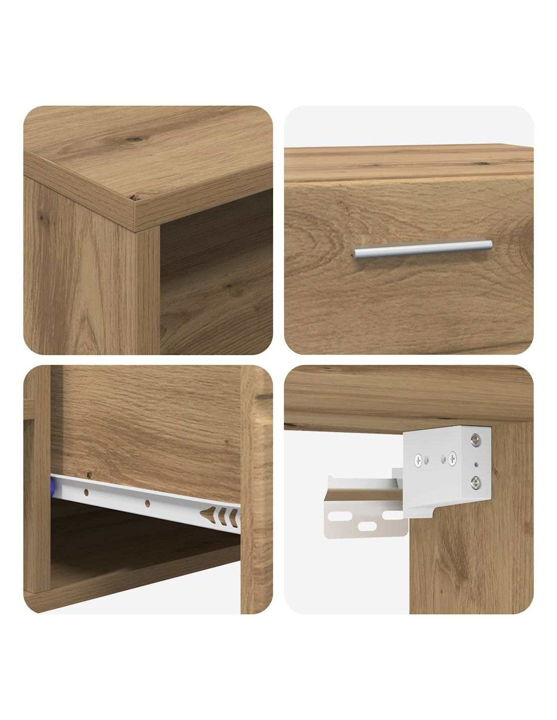 - Legno ingegnerizzato di qualità: Questo mobile è fatto con legno ingegnerizzato, scelto per la sua forza e stabilità. È resistente e durevole, progettato per affrontare l'uso quotidiano. La superficie liscia mette in risalto il design semplice, perfetto per stili moderni.