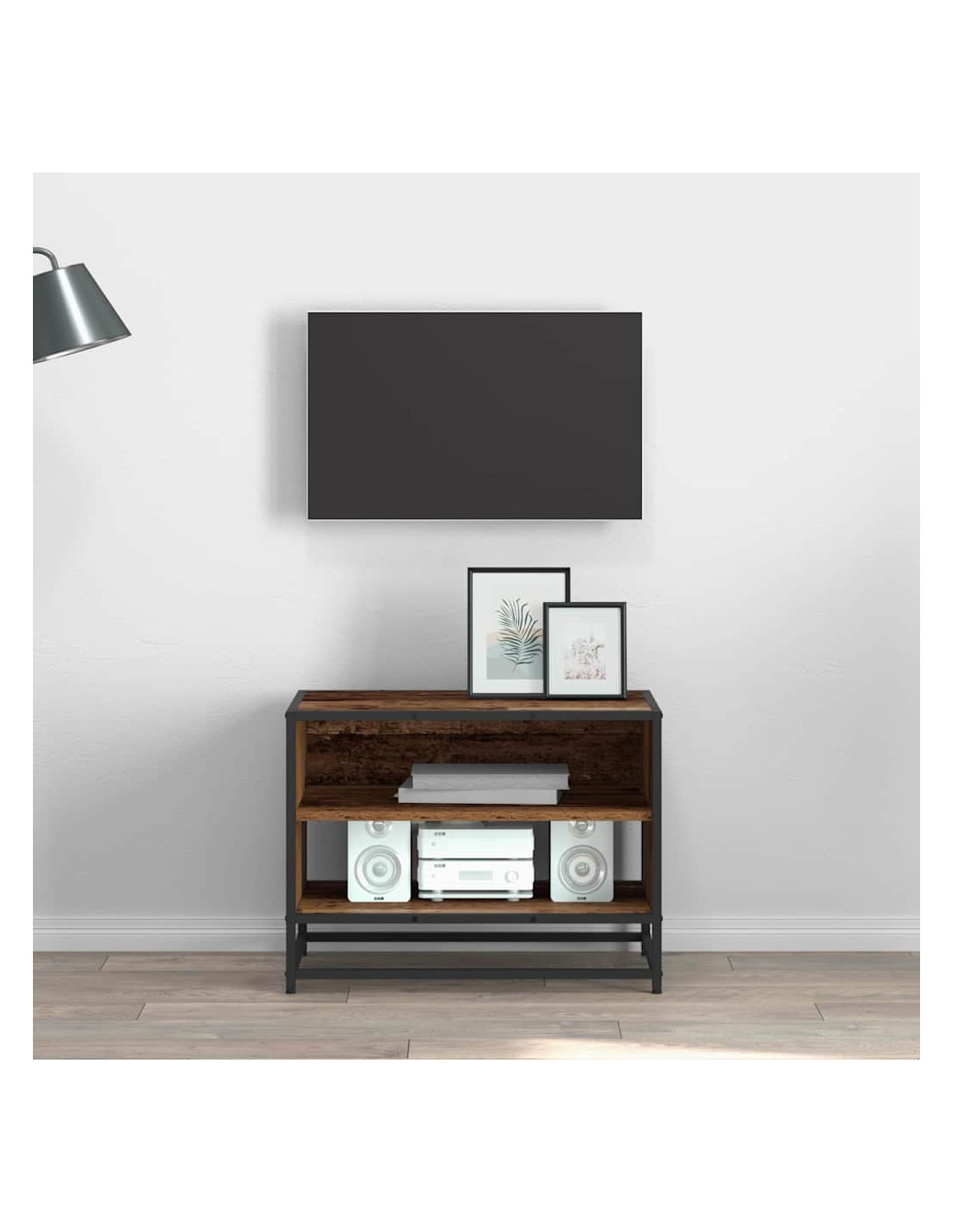 - Finitura Opaca Industriale La finitura opaca dà al mobile un aspetto pulito e moderno, senza riflessi eccessivi. Crea un'atmosfera industriale, rendendolo perfetto per il tuo setup di intrattenimento domestico.