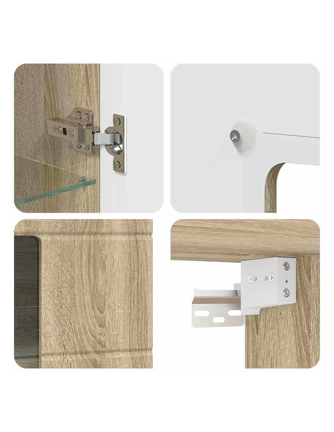 - Costruzione in Legno Ingegnerizzato: Questo armadietto è in legno ingegnerizzato di alta qualità, noto per la sua robustezza e versatilità. Questo materiale è progettato per durare nel tempo, offrendo anche un'atmosfera sofisticata e moderna che si integra facilmente con qualsiasi arredamento.