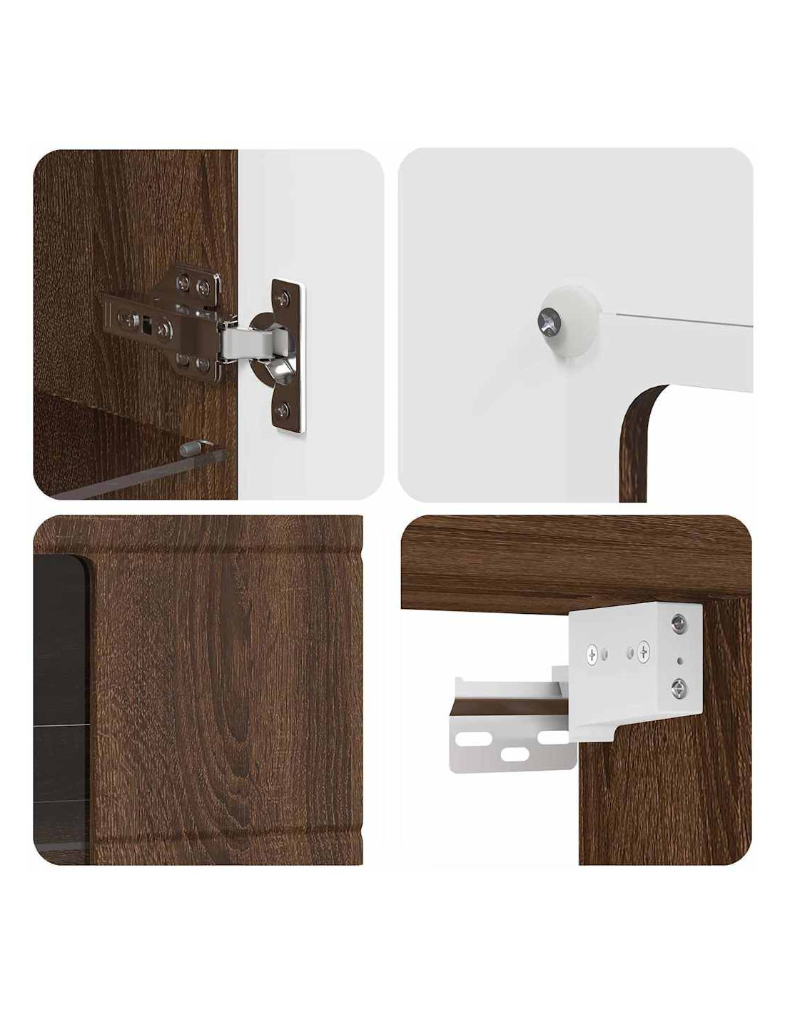 - Costruzione in Legno Ingegnerizzato: Questo armadietto è in legno ingegnerizzato di alta qualità, noto per la sua robustezza e versatilità. Questo materiale è progettato per durare nel tempo, offrendo anche un'atmosfera sofisticata e moderna che si integra facilmente con qualsiasi arredamento.