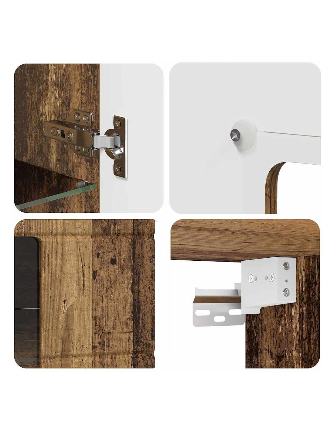 - Costruzione in Legno Ingegnerizzato: Questo armadietto è in legno ingegnerizzato di alta qualità, noto per la sua robustezza e versatilità. Questo materiale è progettato per durare nel tempo, offrendo anche un'atmosfera sofisticata e moderna che si integra facilmente con qualsiasi arredamento.