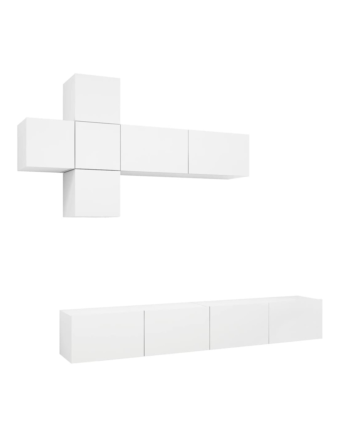 Questo set di mobili TV sospeso è realizzato in legno multistrato, ed è robusto e durevole. Il set di armadietti è fissato al muro e costituisce un'aggiunta in uno stile senza tempo alla vostra casa. Il set è dotato di diversi scomparti che lo rendono un luogo ideale per riporre riviste, DVD o altri oggetti. Questo set di mobili per dispositivi multimediali è facile da pulire con un panno umido.