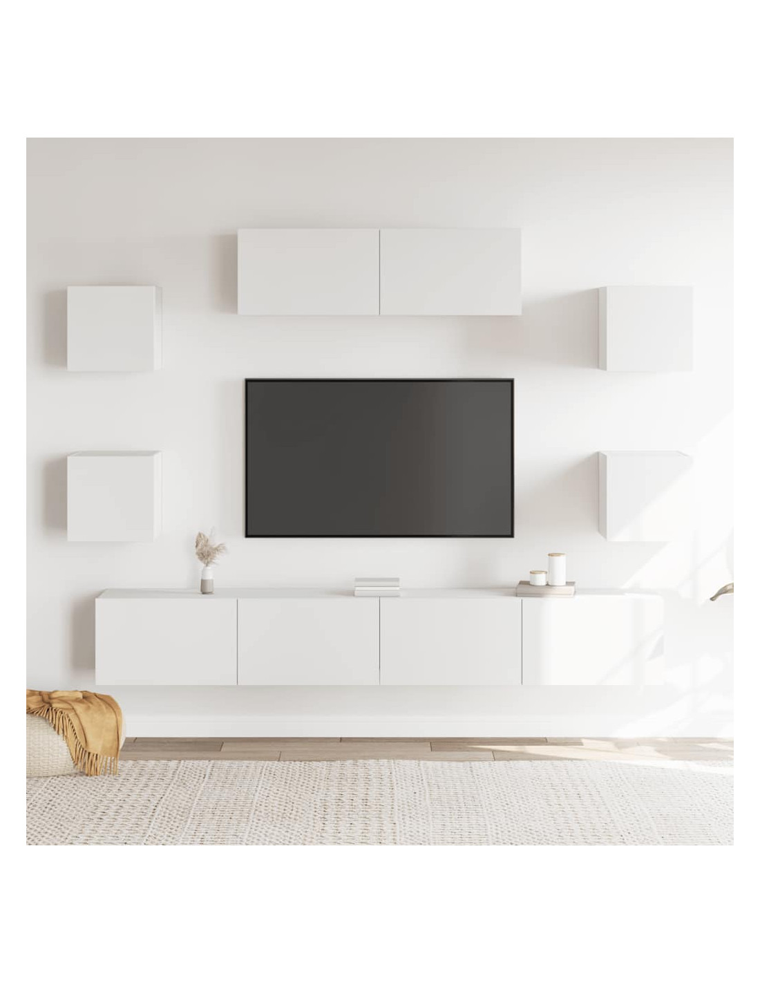 - Design a parete: L'unità TV non occupa spazio a pavimento. Potete appenderlo facilmente alla parete.
