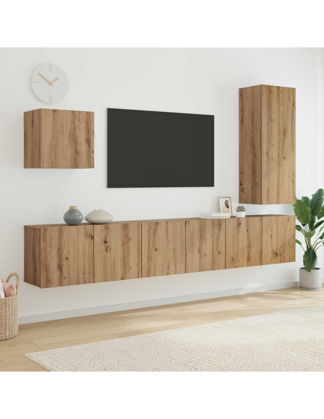 - Opzioni di stoccaggio complete: Include armadi di varie dimensioni, da corti a alti, per soluzioni di storage flessibili. Ogni armadio offre spazio ampio per mantenere tutto in ordine, senza disordine nel soggiorno.