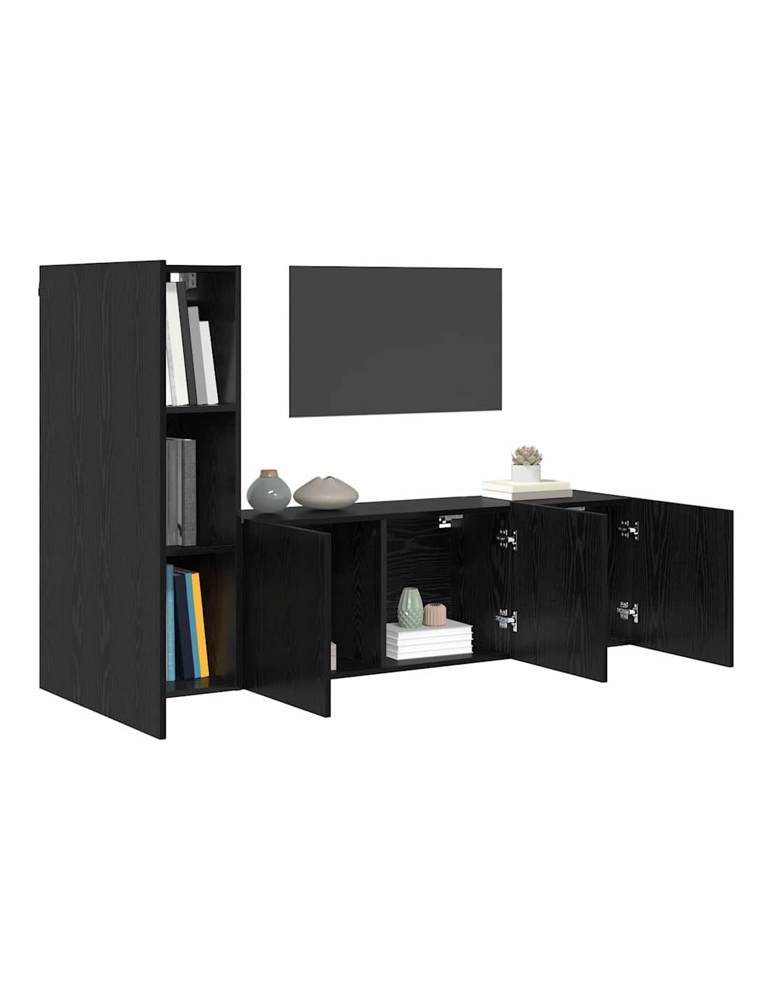 - Opzioni di stoccaggio complete: Include armadi di varie dimensioni, da corti a alti, per soluzioni di storage flessibili. Ogni armadio offre spazio ampio per mantenere tutto in ordine, senza disordine nel soggiorno.